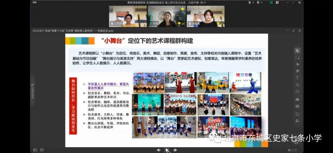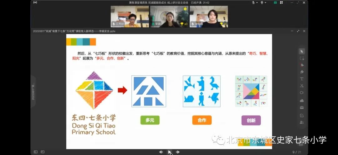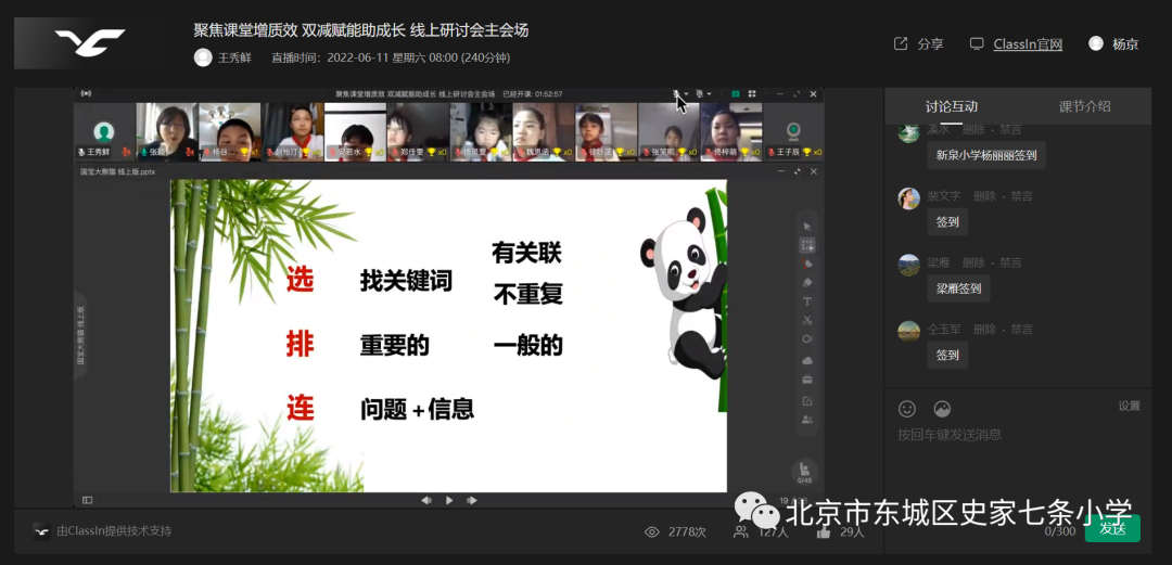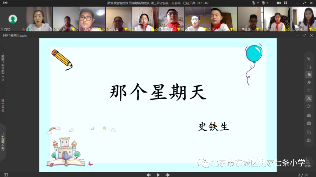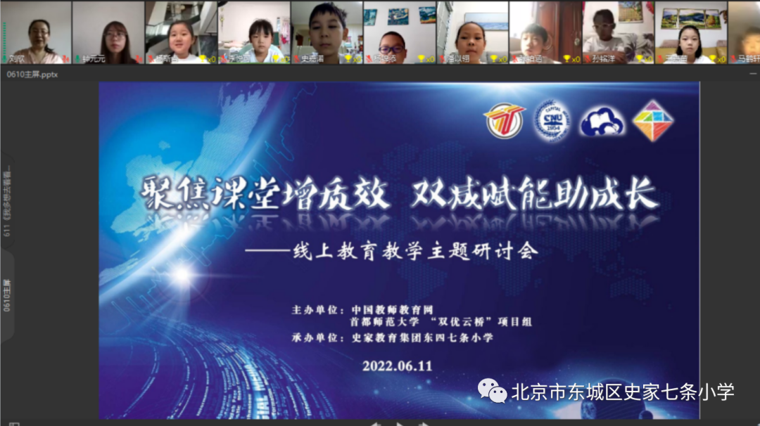 2022年6月11日上午,史家七条小学举办了“聚焦课堂增质效 双减赋能助成长”为主题的线上教育教学研讨会。