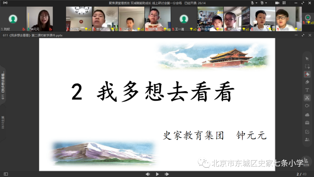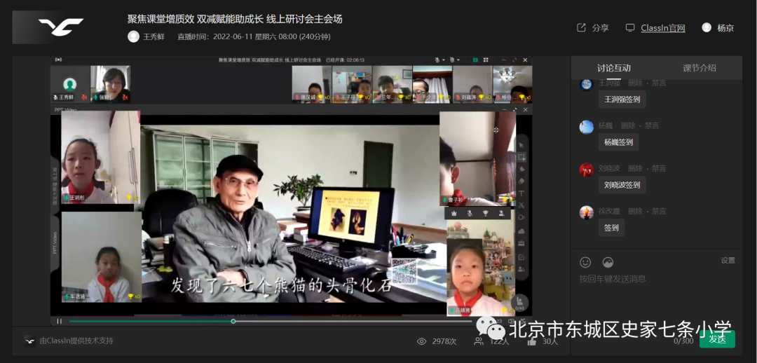 本次研讨会由中国教师教育网、首都师范大学“双优云桥”项目组主办、史家教育集团东四七条小学承办,感谢classin 提供技术支持。会上来自陕西、银川、浙江、山西等全国各地的教育同仁,以及北京通州、昌平、密云、房山各区县7000余人次的教师朋友们,与我们云端相聚,参与研讨交流。