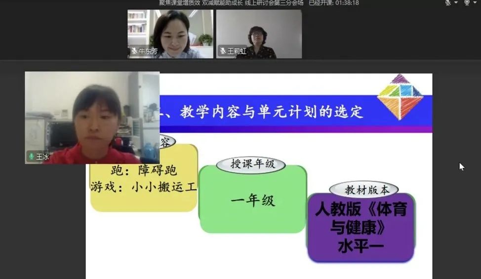 王冰老师:《障碍接力跑》充分考虑低年级学生特点,创设情境增加趣味性,将“情境、游戏、比赛融入教学全过程。以赛促学,熟练动作,巩固技术,提高练习的积极性,实现课堂教学“学、练、赛”一体化课堂。收拾器材转化为小游戏小比赛,培养学生积极的劳动态度。