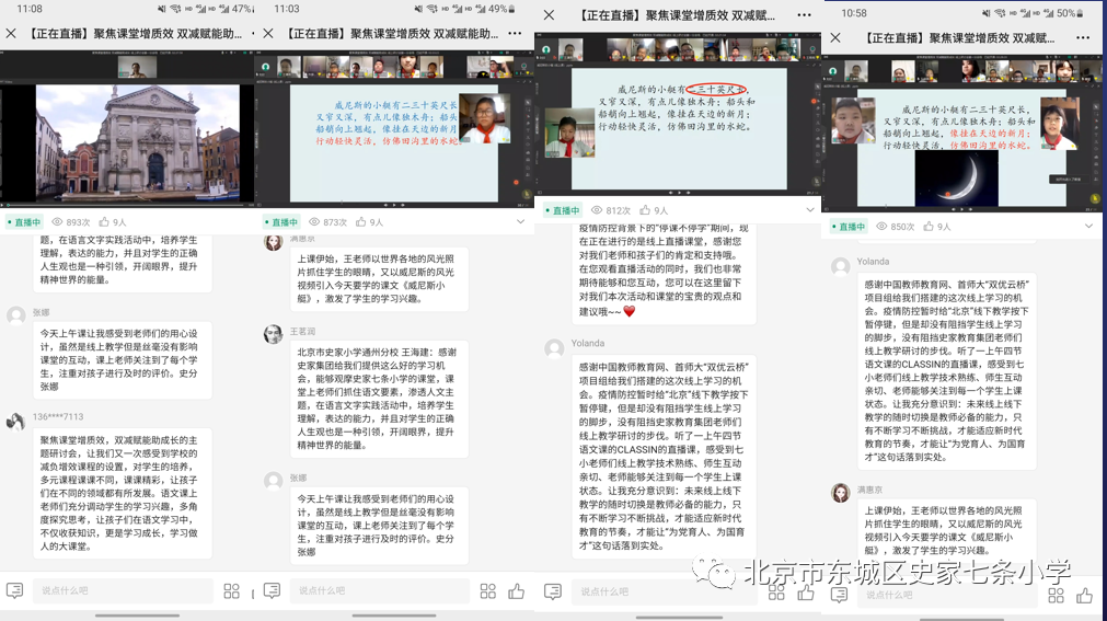 本学期原计划采取线上线下相结合的研讨方式,因北京疫情直接改为线上进行,这是对于七小教师线上教学的一次巨大的挑战。挑战即机遇,四个会场,主播、录播加线上说课共计15节,老师出色表现,7000余人次的线上参与是对我们的鼓励和鞭策。
