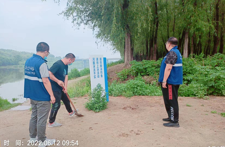 图释:农业服务中心工作人员提前查看河道水位
