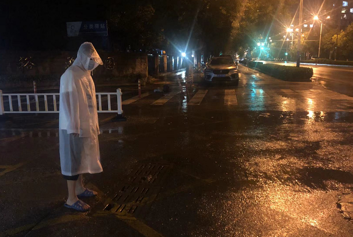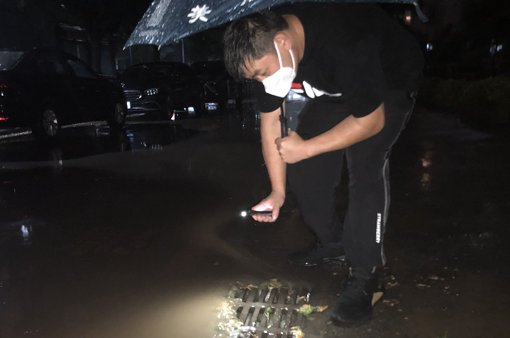 图释:双裕西区社区工作人员查看辖区排水情况