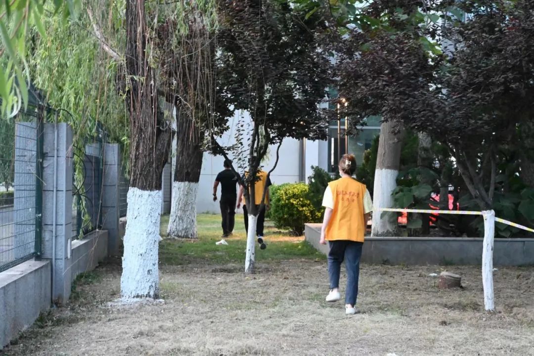 为阻断疫情传播风险,杜绝“手递手”传递物品现象,志愿者分别在学校10处围栏区域附近开展巡逻值守,劝阻师生交接物品物资、外卖等。