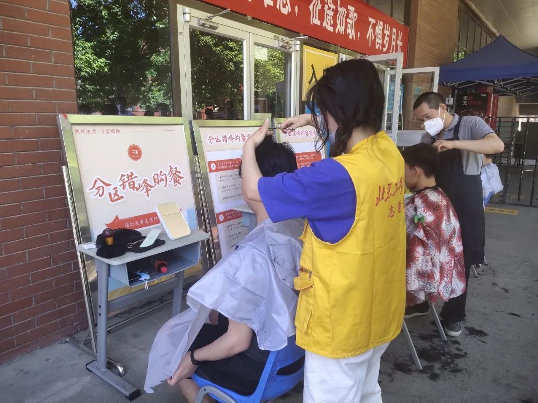 为满足相对临时封闭管理期间同学们的理发需求,志愿者参与到“温馨义剪”免费理发活动,为平乐园校区和中蓝校区同学理发1000余人。此外,为了给2022届毕业生留下美好的校园回忆,志愿者们积极响应学校号召,主动为毕业生们提供线下拍照服务,用手中的相机留下大家最美的瞬间。