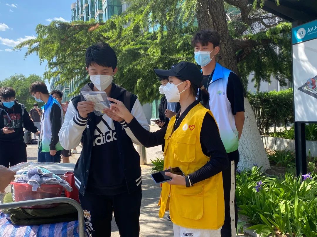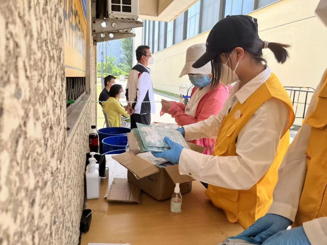 在疫情最危急的时刻,志愿者们能够迅速响应,时刻行动,参与学校校门值守,开展核验出校码、发放抗原检测试剂等工作。