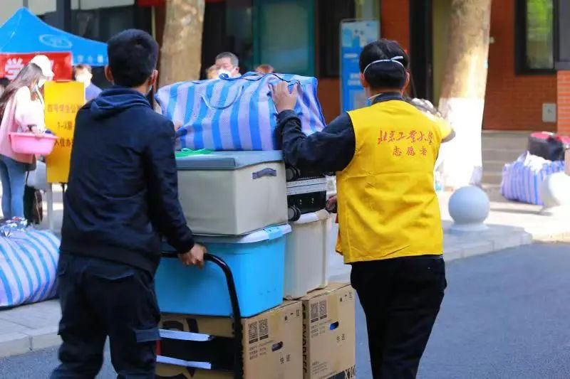 除此之外,各学部(院)学生志愿者先锋队的同学们也纷纷行动起来。志愿者们在教学楼值守、毕业生行李打包、宿舍楼值守发放口罩、“以艺抗疫”等志愿工作中,用责任担当的意志筑牢抗击新冠疫情的铜墙铁壁。近1000名志愿者在中蓝校区预毕业研究生搬迁至平乐园校区提供调度配合和行李搬运等服务。
