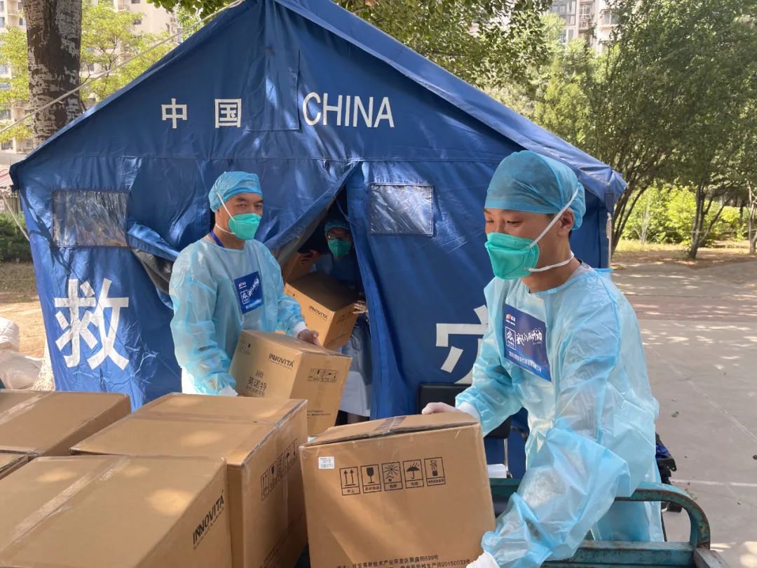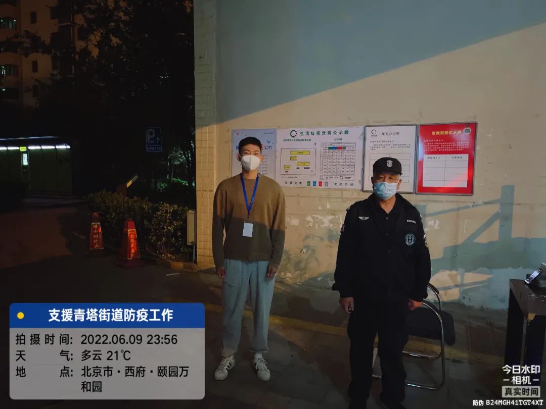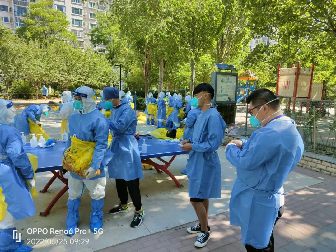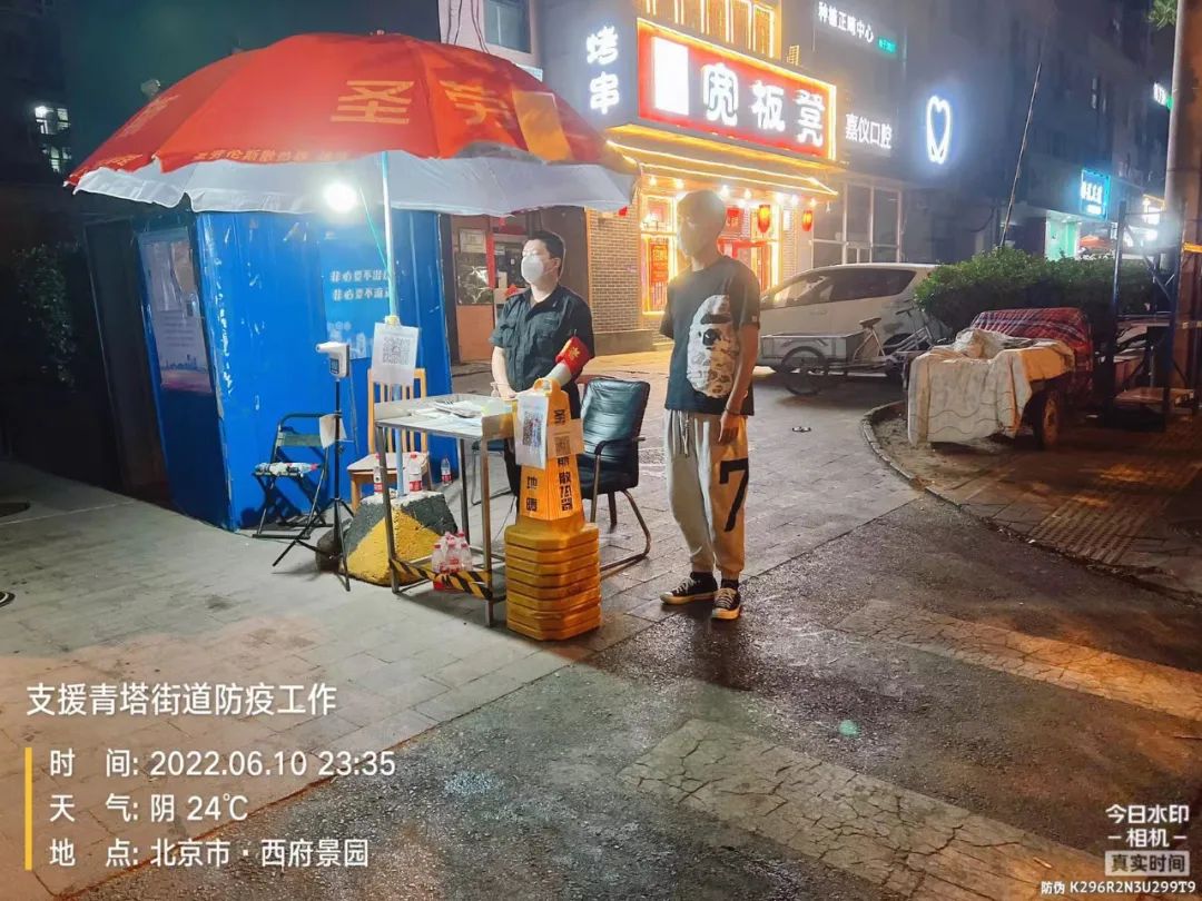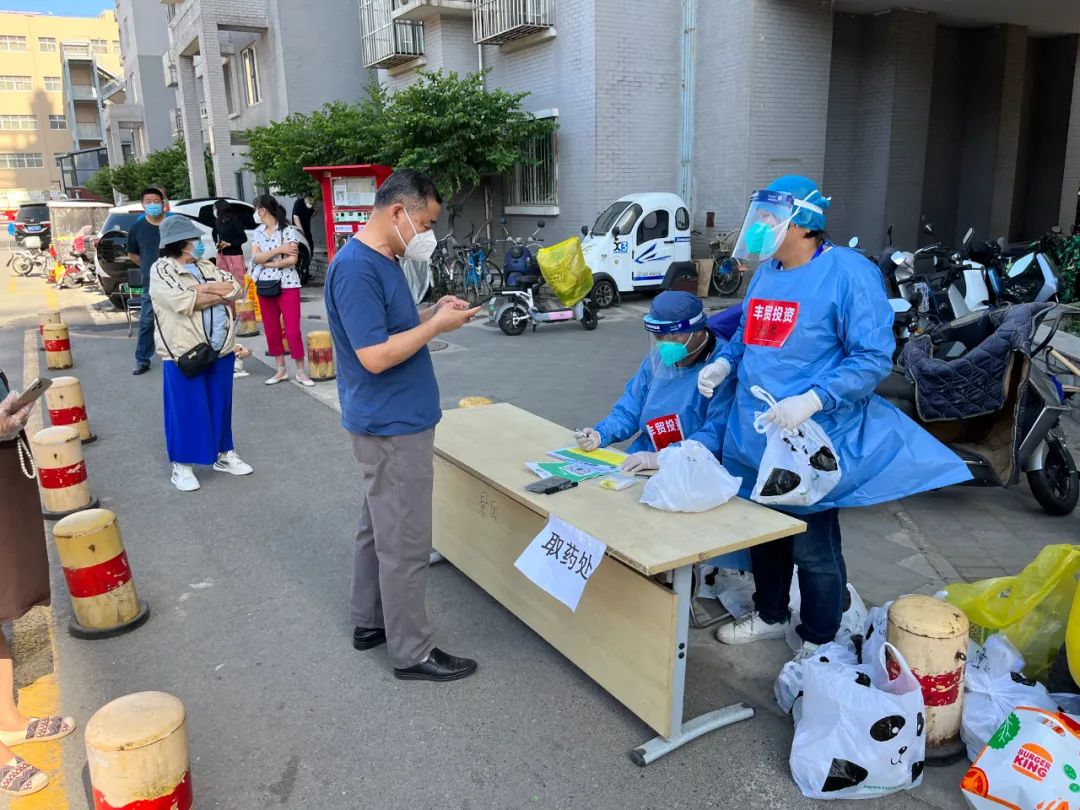 5月22日晚,丰贸公司突击队接到紧急支援任务,要求23日紧急驰援青塔街道民岳家园社区,突击队员全员在刚刚结束丽泽雅园支援任务还未来得及休整,火速前往青塔街道民岳家园社区,与公司先期支援力量汇合,担负起西府景园、颐园两个小区,8栋楼宇约1400户,3400余名居民及小区物业等人员的防疫管控工作。5月23日突击队到达后,连夜召开工作会,根据掌握的实际情况及街道工作要求明确职责分工,组建临时指挥部,成立综合协调组、购药就医组、核酸检测组、抗原检测组、物资保障组、保安组。购药就医组由先期到达的东铁营分公司支援队伍负责,核酸检测组由王桂华、龚鸣负责,抗原检测组由孙亚南、王孛君负责,物资保障组由李荣娟负责,安保组由王文庆、宋金岭负责。此次支援任务工作与以往工作不同之处在于,由过去支援配合工作为主,变为主动统筹安排小区防疫各项工作。虽无社区工作经验,但支援期间,大家各司其职,敢于担当,团结协作,充分发挥每一个人的优势迅速进入角色。