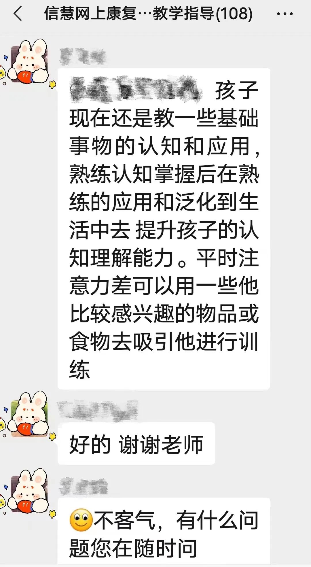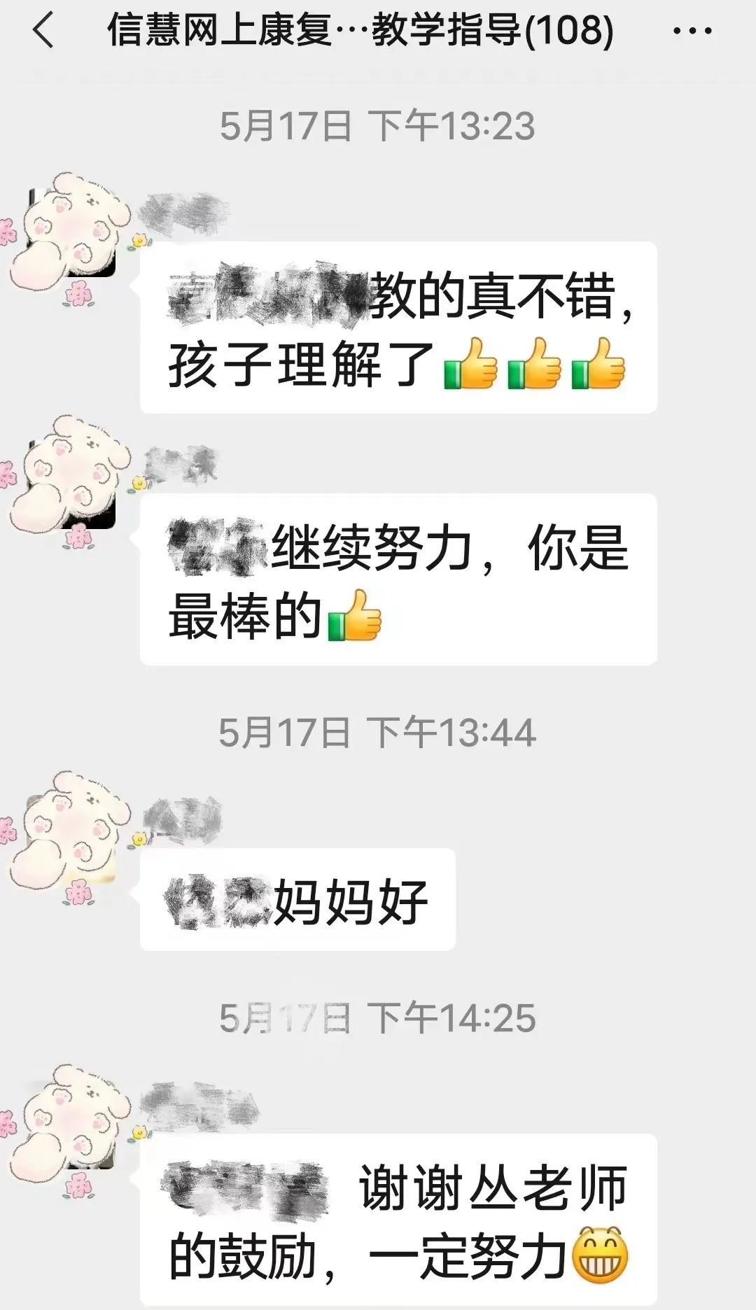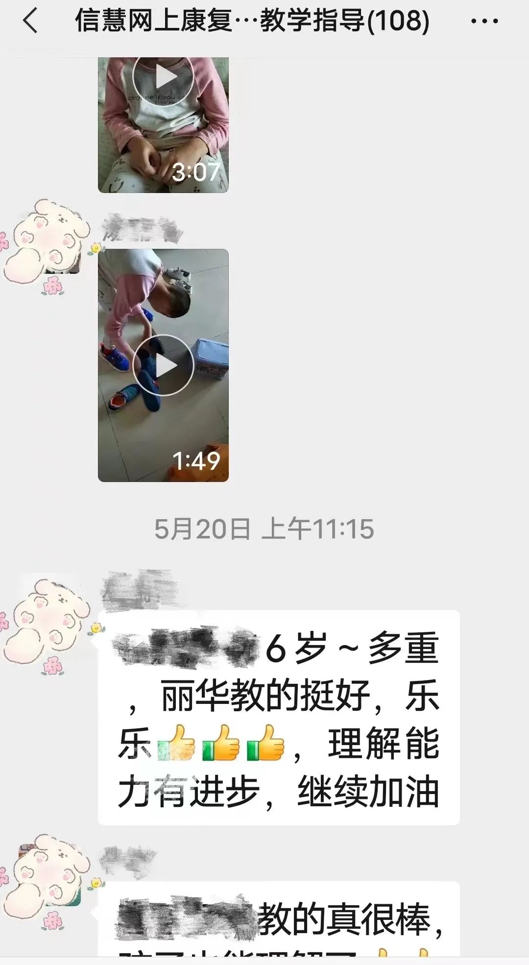 老师们每天在线为有康复需求的特殊儿童提供基础康复知识培训,让孩子、家长足不出户也能学到简单的康复知识,同时对孩子及家长进行专业性的心理疏导,缓解他们的心理压力,鼓励他们增强信心。