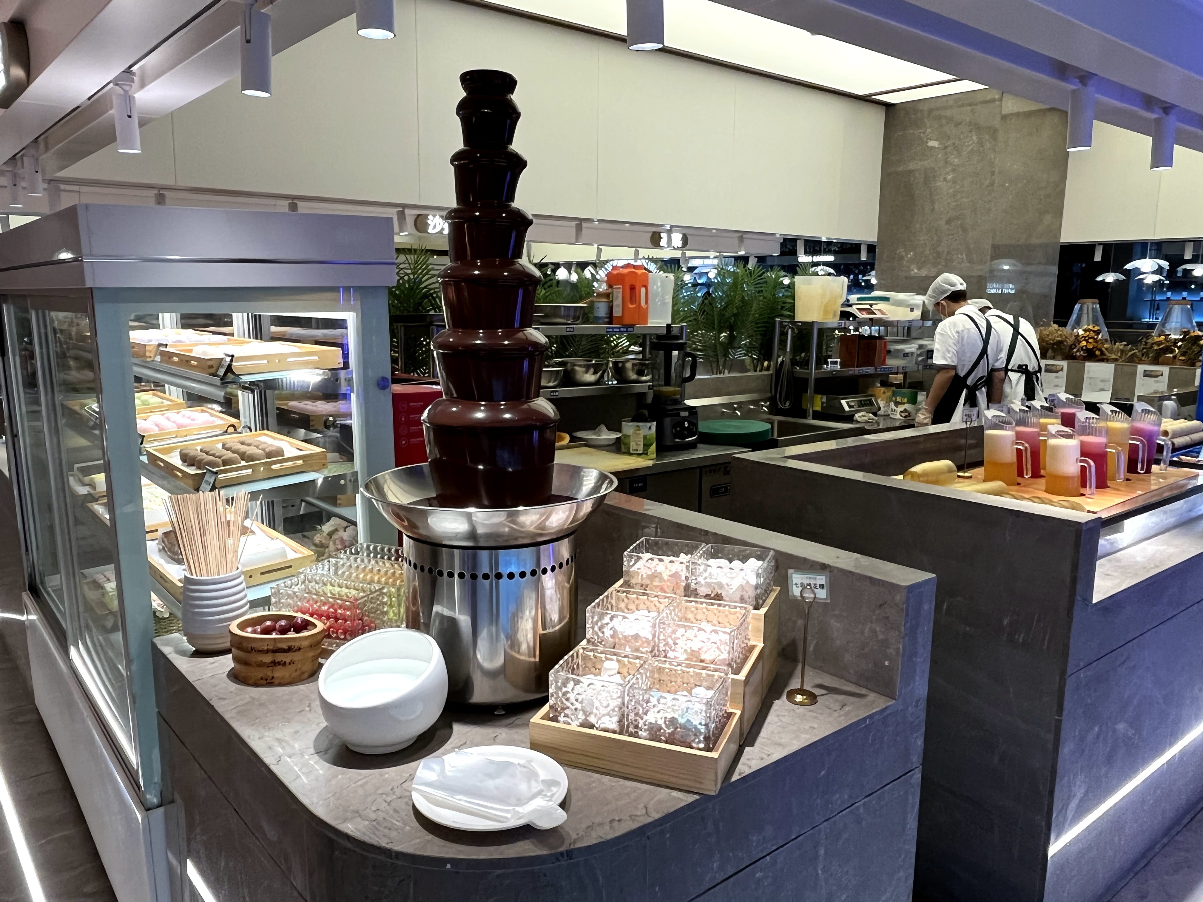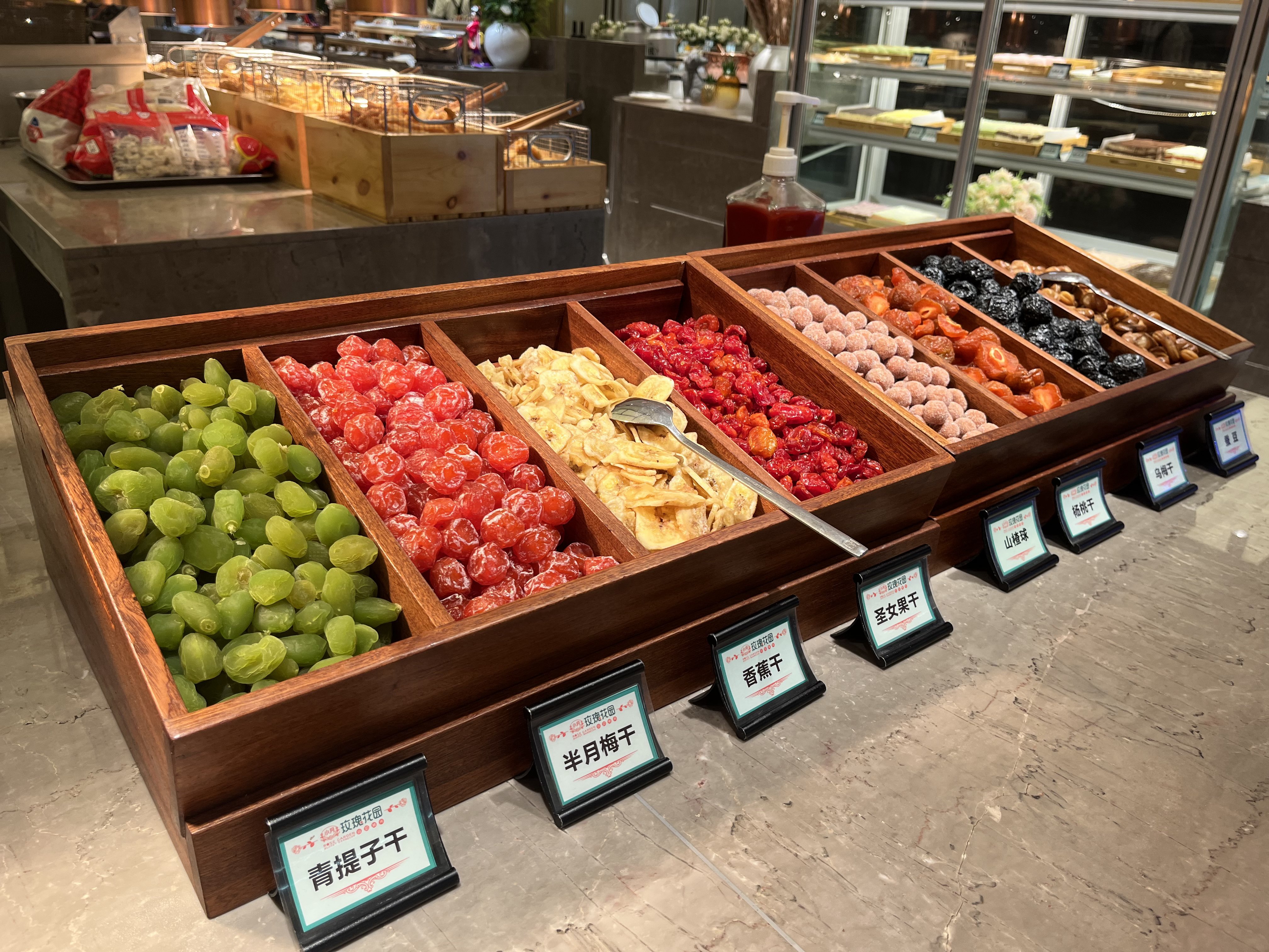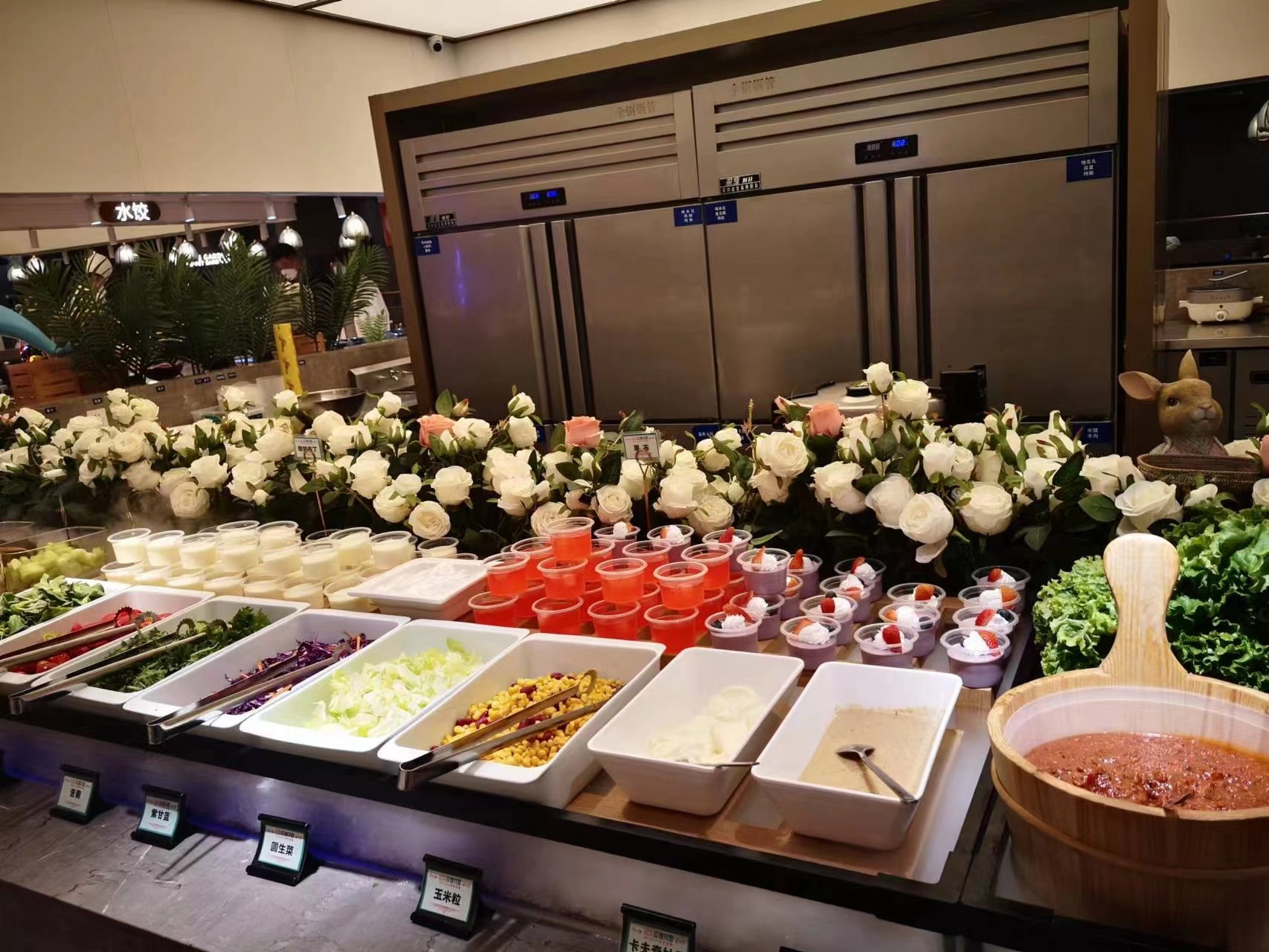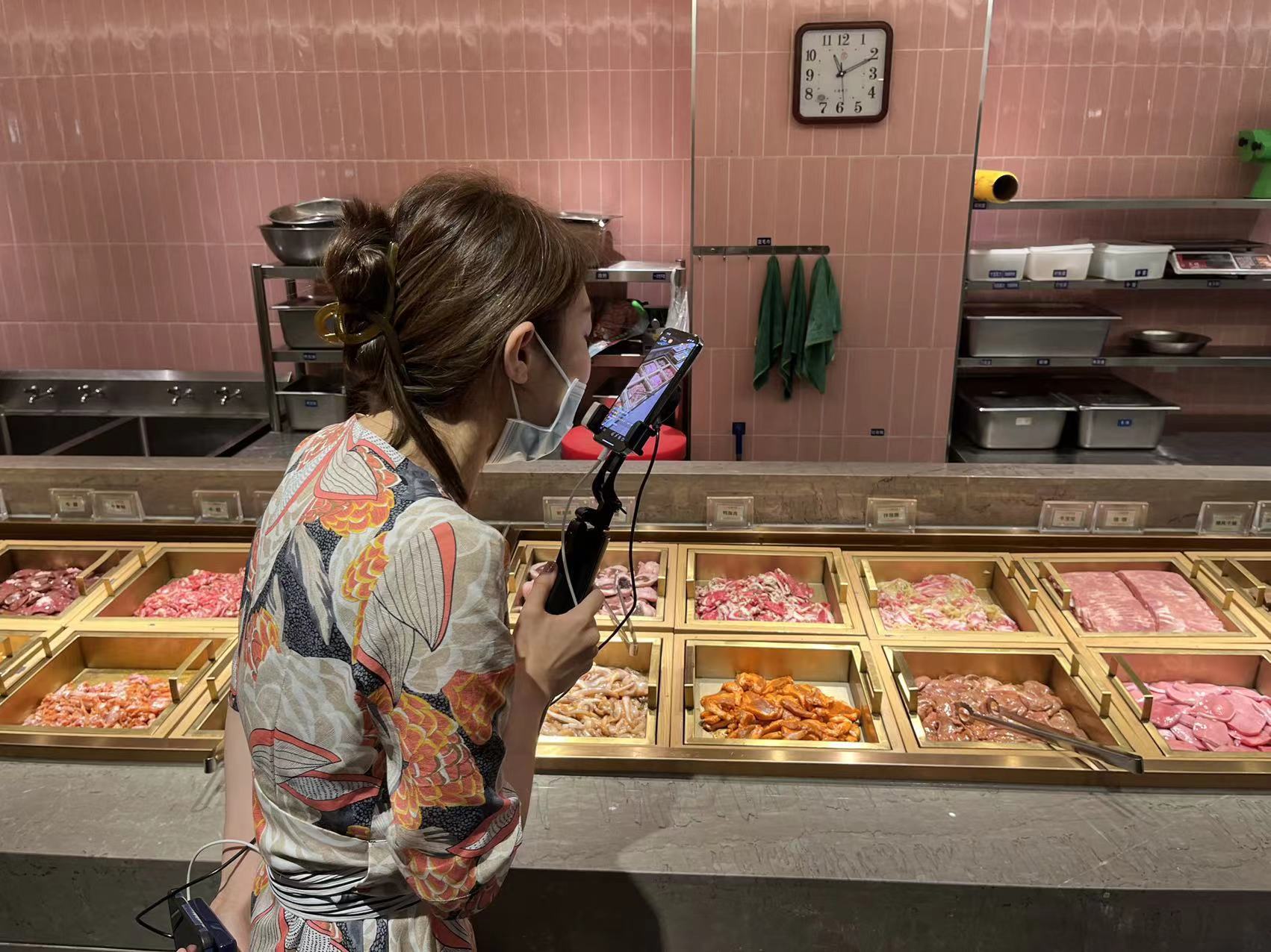 在玫瑰花园自助烤肉餐厅,记者看到各种新鲜食材琳琅满目,牛蛙、鱿鱼须、北极虾等各种烤肉食材和小海鲜应有尽有,整齐摆放在餐台上供食客自取。还有烤鸭、寿司、羊肉串、网红甜点、鲜榨果汁以及各类蒸煮熟食......完美地满足了食客们对美食的多样需求。
