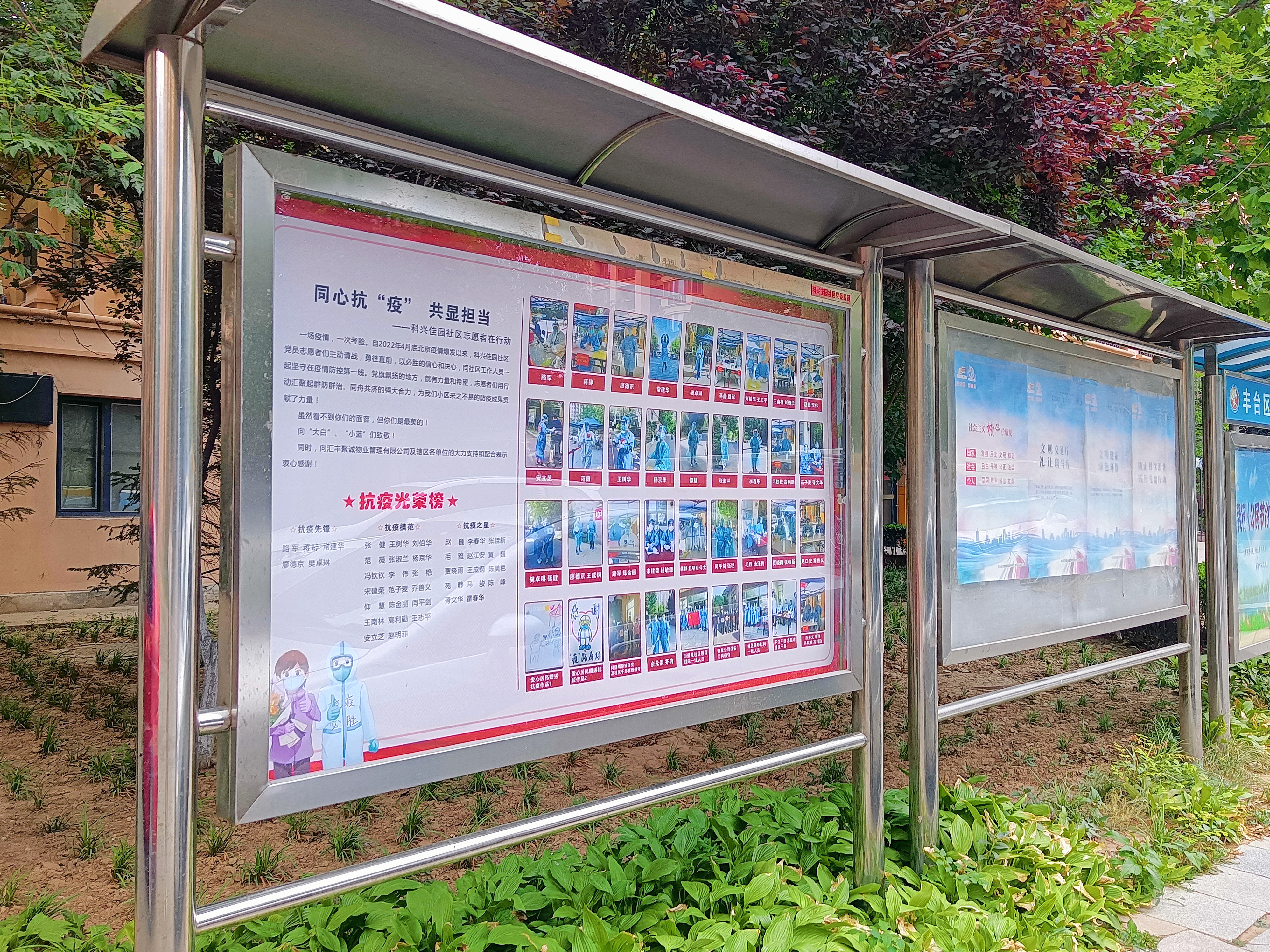 “在这!这是我妈妈!”在靛厂路26号院内,一名六、七岁的男孩指着宣传栏激动地向他的小伙伴儿们说道。小男孩的妈妈,是一名回社区报到的在职党员,已经在科兴佳园社区支援防疫工作近两个月。