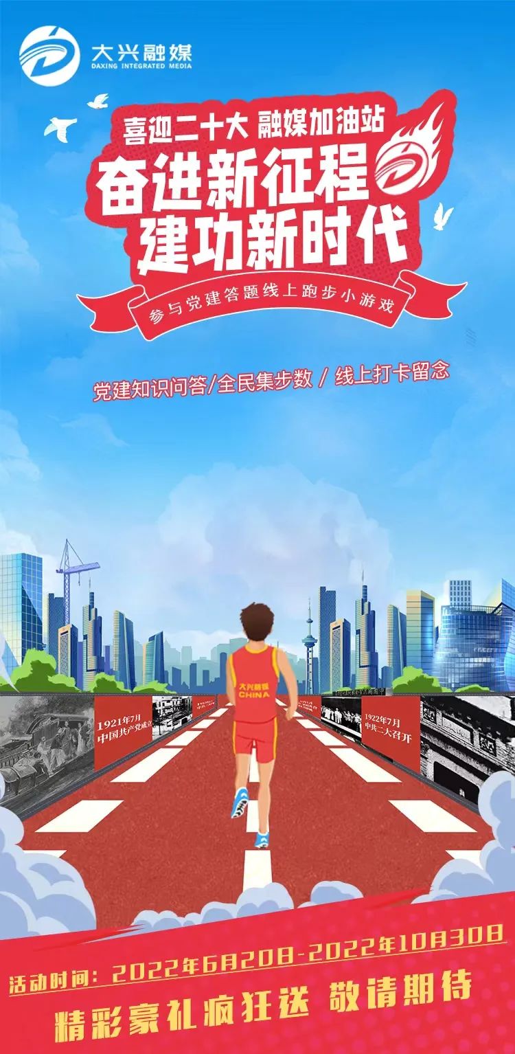 2022年是党的二十大召开之年,也是实施“十四五”规划,全面建设社会主义现代化国家的重要一年。为喜迎党的二十大胜利召开,大兴融媒体中心6月20日正式推出“喜迎二十大 融媒加油站”线上小游戏。