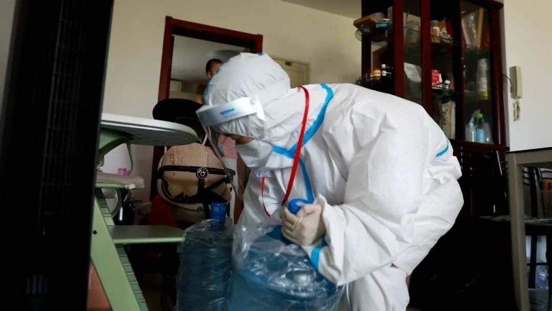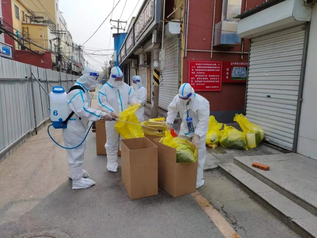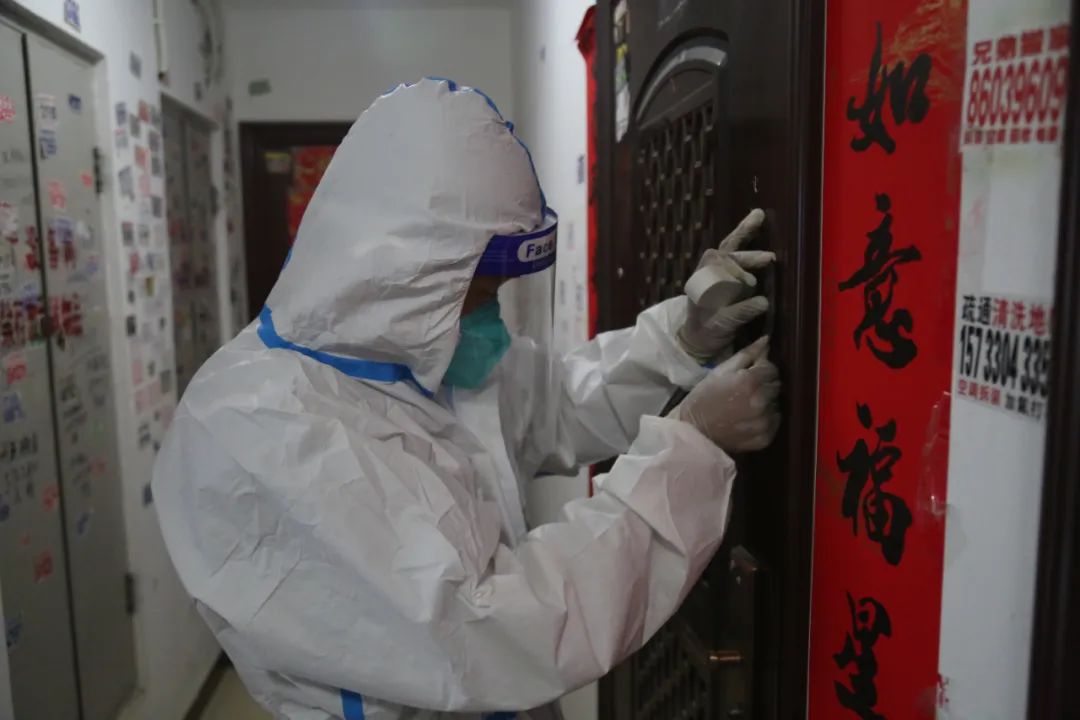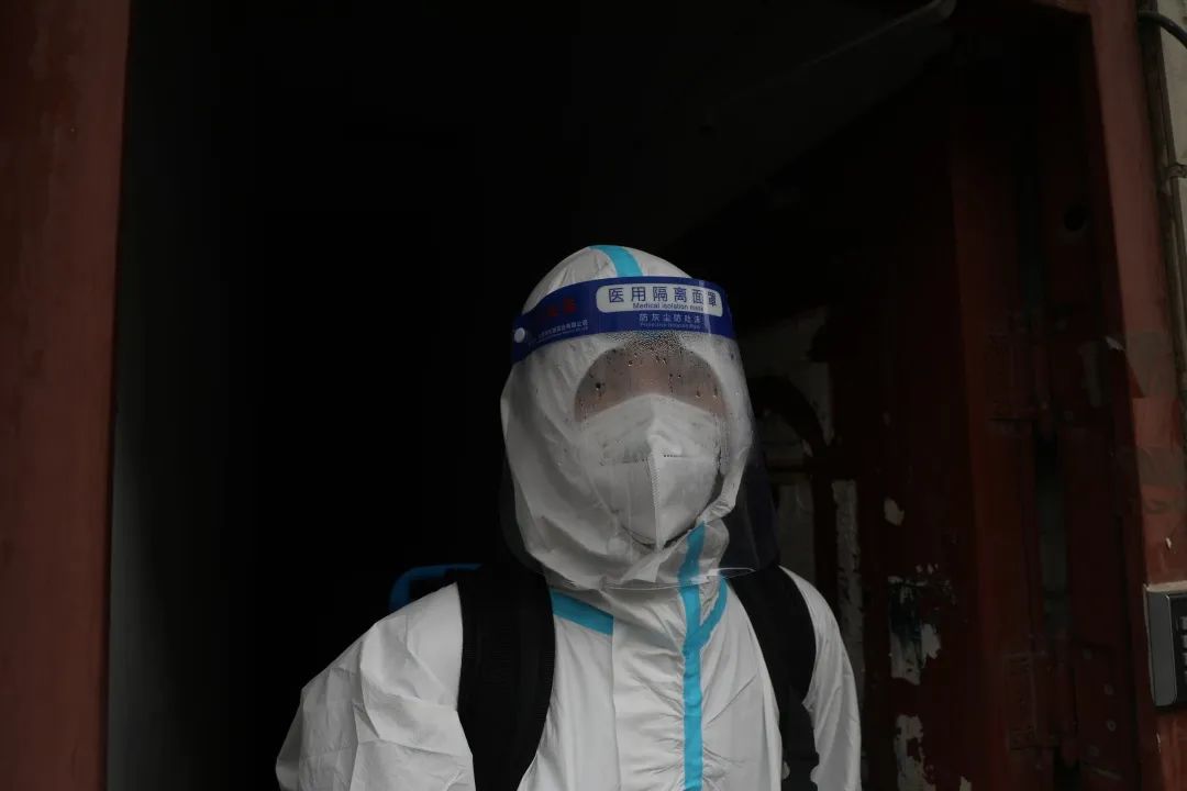 穿着防护服,戴上护目镜,套上塑胶手套.....每天清晨到达封控区后,“全副武装”的工作人员便开始了一天的工作
