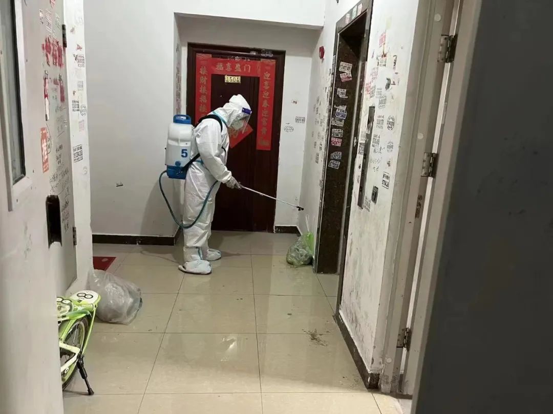 每天一早,工作人员便穿好防护服,拿好头天晚上准备好的硬纸箱、黄色医用垃圾袋前往各个单元门(院),对垃圾进行打包、消毒、收纳。收运垃圾需要逐层爬楼,封控区内两人一组,先上楼进行消杀,然后将垃圾装入医用垃圾袋,袋口扎紧后,再二次消杀,全部消杀完毕后,往下逐层收取垃圾。“封控第一天我和队员干完这一套动作得2个多小时,现在熟悉了,1个小时就搞定啦!”工作人员骄傲地介绍道。