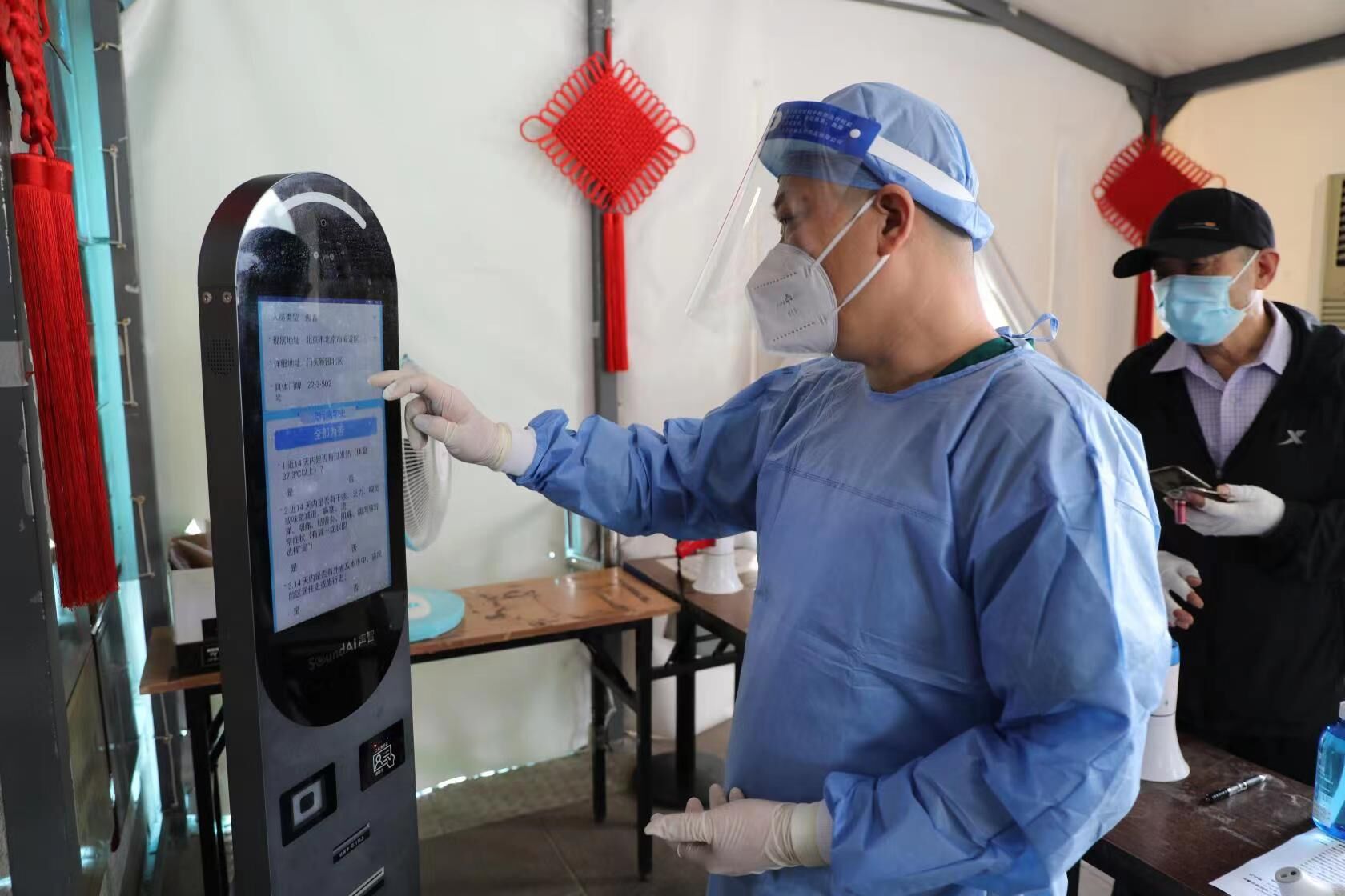 “医院从强化预检分诊落实院感防控工作,包括指导预约诊疗、执行两米线、测温扫码,开展流行病学调查方面,把好预检分诊的第一道关口。”赵立春介绍说:“‘数字哨兵’上岗后,大大提高了预检分诊处的服务效率和服务质量。预检分诊工作人员可以使用该设备帮助老年患者填写流调信息,相比于之前指导老人用自己的手机填写流调或手工登记,新设备使用省时省力,还能避免停留造成聚集。”