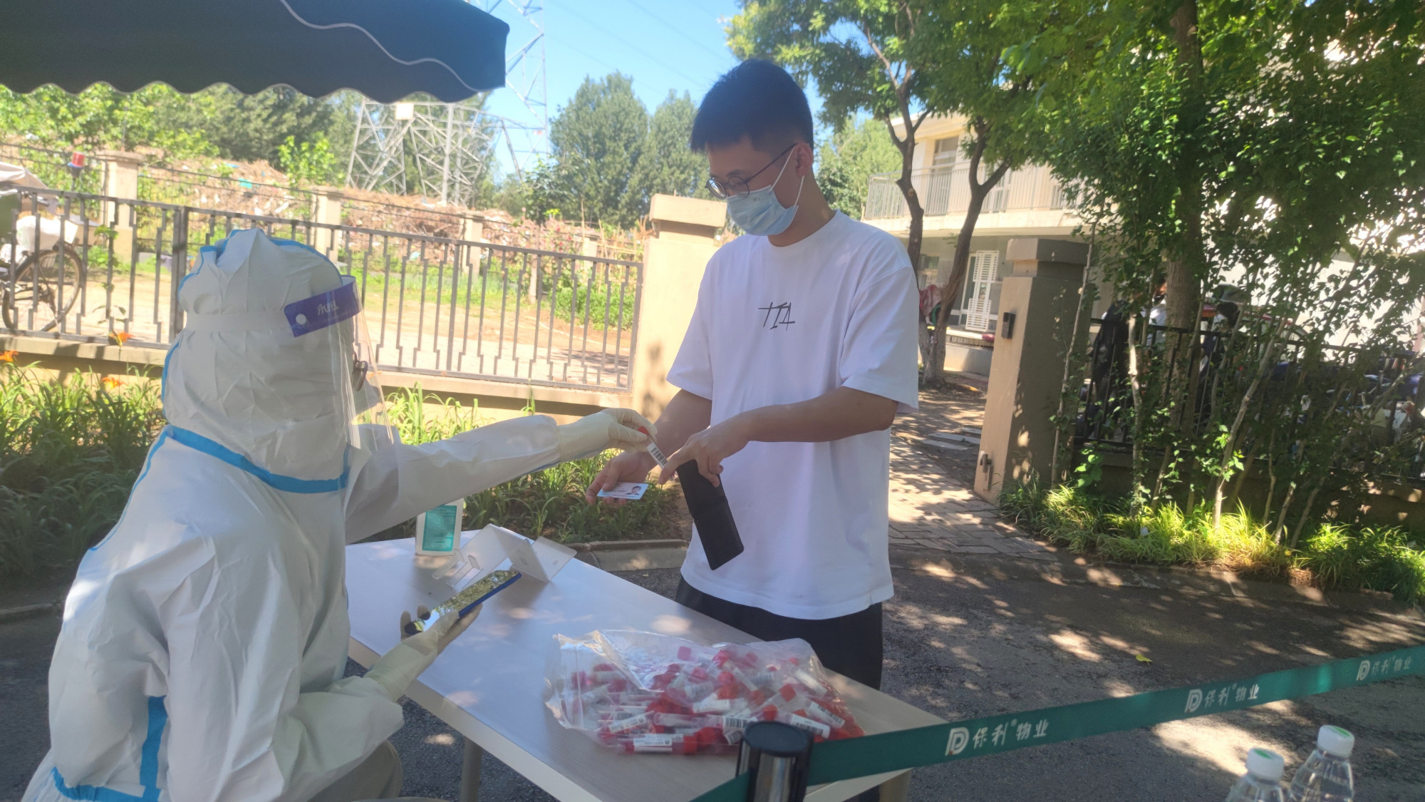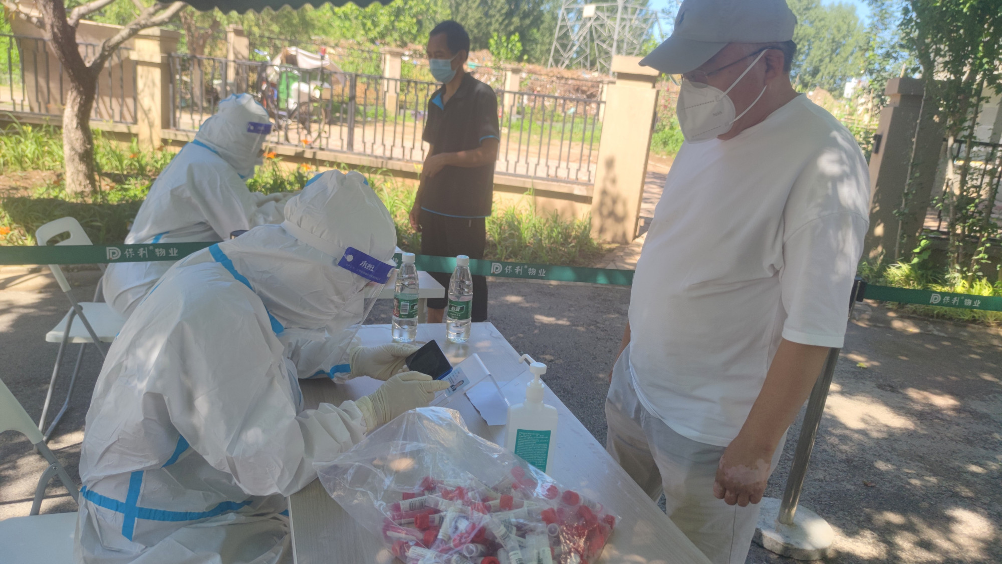 “大家提前准备好身份证,戴好口罩,保持距离……”在市场街社区核酸检测点,来自阳坊镇的机关干部统一化身“大白”,为前来采样的居民录入信息,扫描证件、核对信息、分发核酸检测试管……这些看似简单的动作,却需要他们时刻保持注意力集中,以确保信息录入无误。尽管天气炎热,大家还身穿不透气的防护服,但没有任何怨言。
