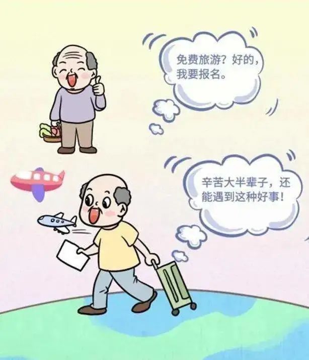 利用老年人外出旅游的热情和节俭的生活习惯,以不合理的低价甚至免费组织旅游活动,吸引老年人参加组团。旅游过程中则安排各种购物活动,将商品以远高于市场价格卖给老年人进行牟利。