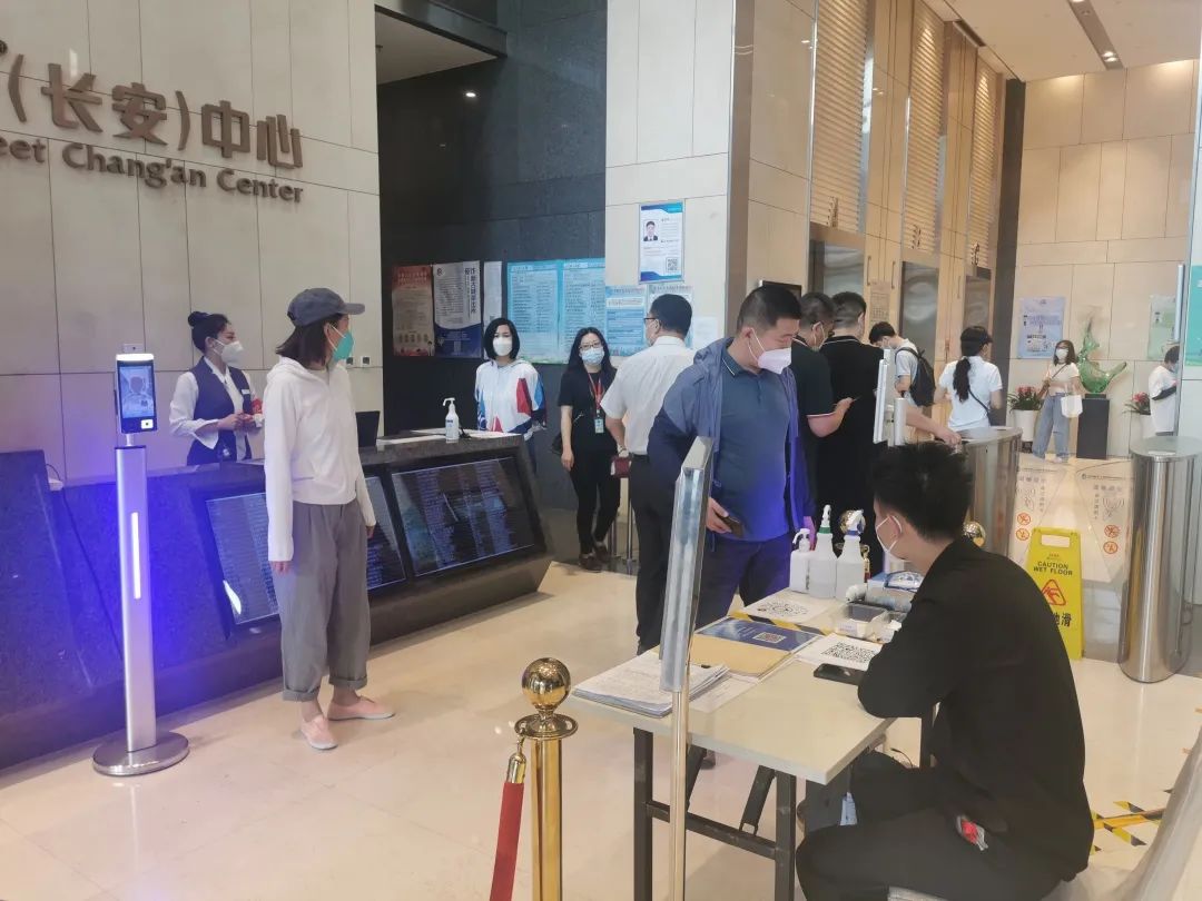 京西商务中心内涉及到复工的企业680余家,11200余名员工资料全部上传报备,测温、健康宝核酸记录、行程码、疫苗接种记录通过人脸识别闸机的技术呈现出来,这套配备在京西商务中心所有楼宇高效的启用,大大提高了员工入楼的疫情防控效率,避免了上班高峰时段的拥堵积聚。