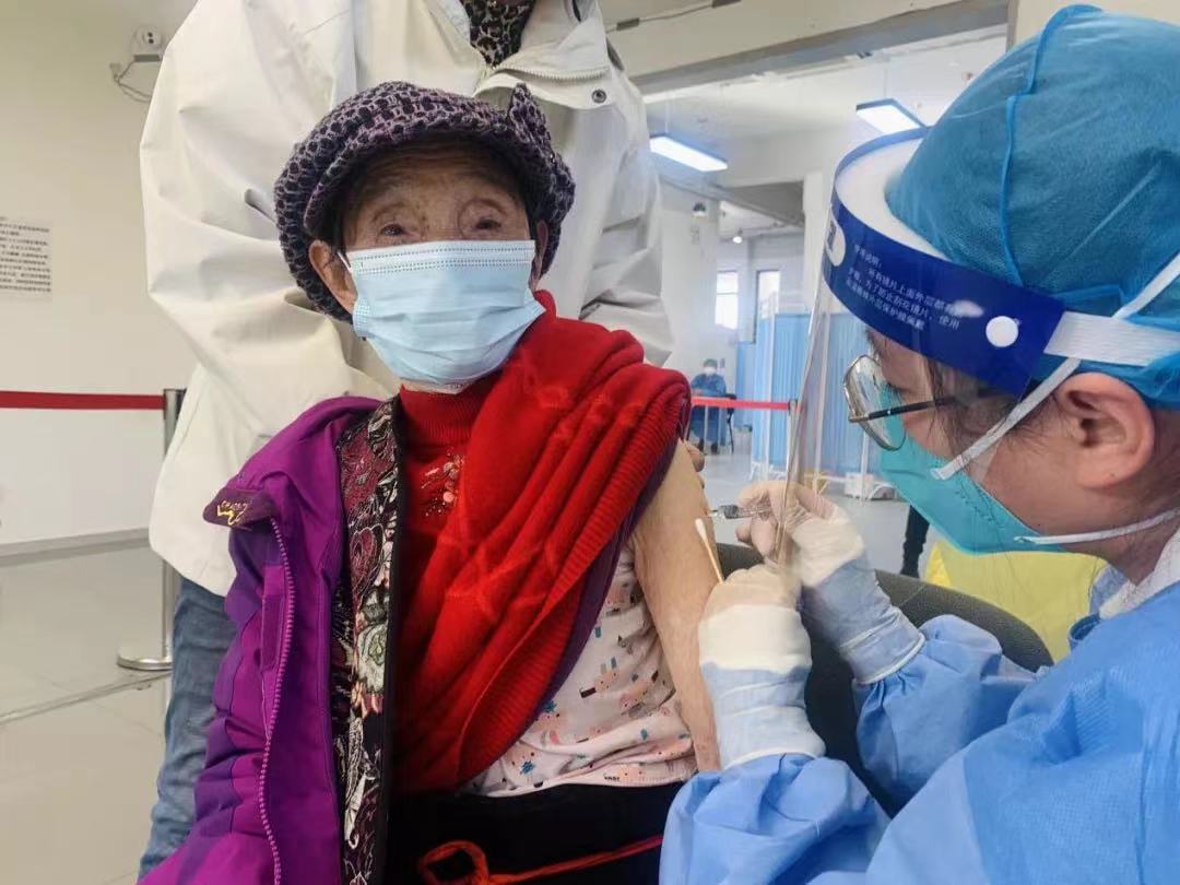 现年87岁的老党员张桂英也积极响应号召,今年是她加入中国共产党的第53个年头。张桂英主动要求家人带着她去接种疫苗,她说:“接种疫苗能保护我们老年人,国家还给免费打,什么反应都没有,特别好,作为老党员我一定要带头打疫苗。”