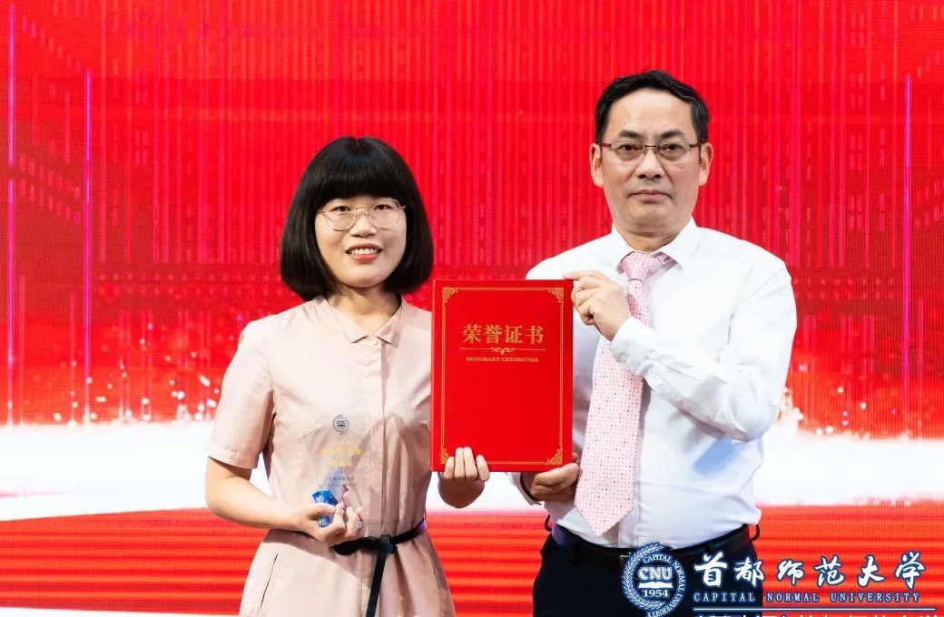 学前教育学院2019级学前教育(师范)专业本科生。该生理想信念坚定,学业绩点4.23,曾获国家奖学金、“中国大学生自强之星”、北京市“三好学生”、校级“青春榜样”、校级一等奖学金等荣誉。作为优秀师范生代表于第37个教师节参加孙春兰副总理座谈。在中国共产党成立100周年庆祝大会中圆满完成献词任务。现担任校团委青年融媒体中心总编辑、学院团委学生会执行主席、班级班长。疫情期间积极参与社区一线防疫工作,志愿服务时长700余小时。