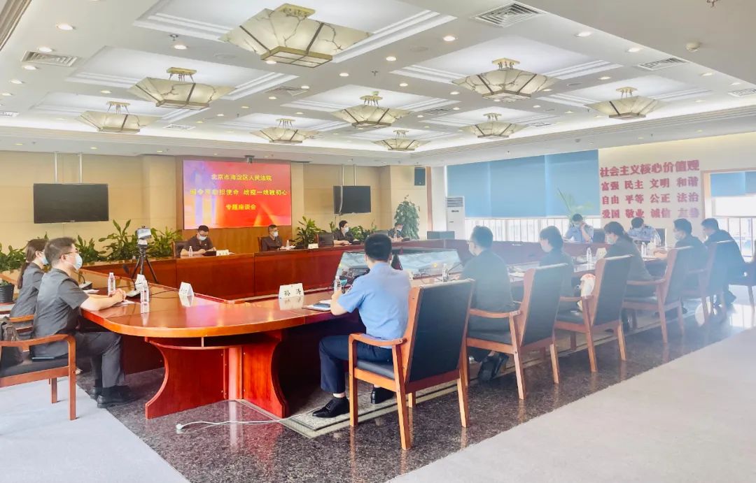 机关党委委员代表综合审判庭负责人王志勇民事审判五庭(知识产权审判庭)负责人杨德嘉支援战疫干警代表参加本次座谈