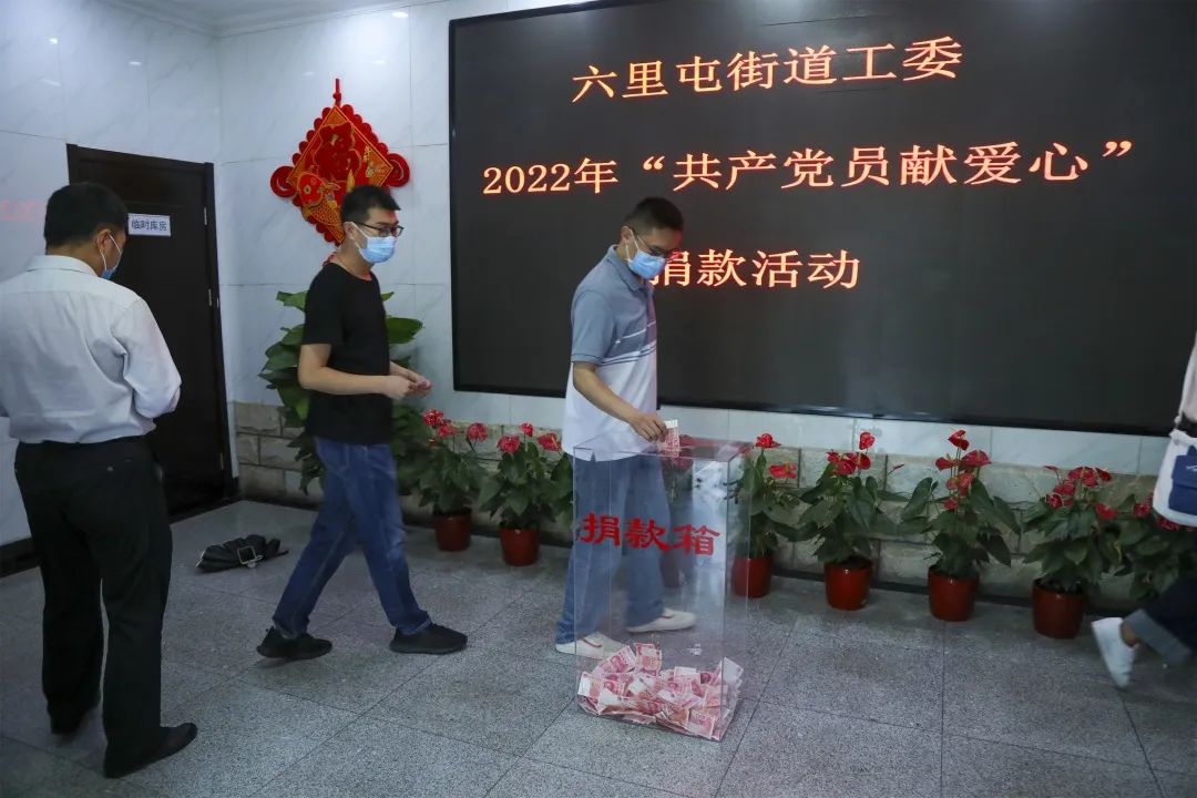 7月1日上午,六里屯街道办事处一楼大厅爱心涌动,六里屯街道工委2022年“共产党员献爱心”捐款活动举行,机关党员、入党积极分子、群众纷纷踊跃捐款。