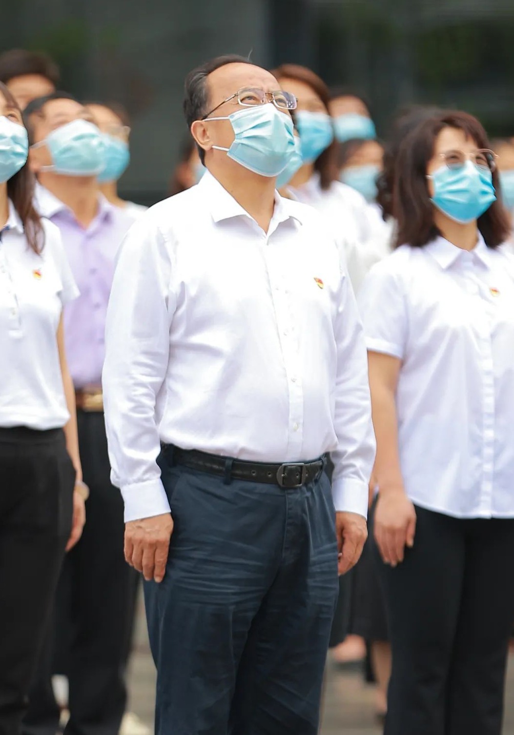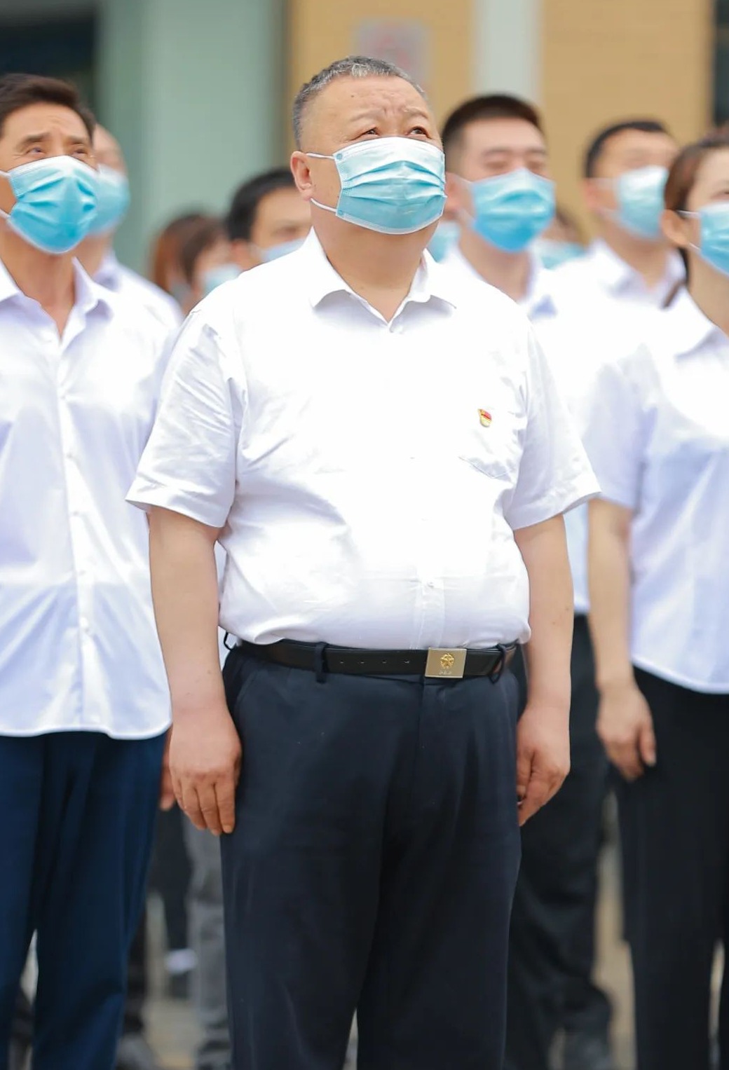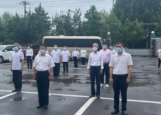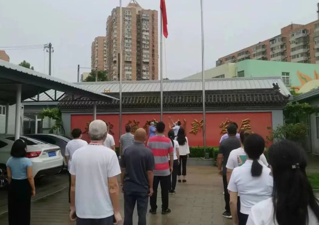 7月1日上午9时整,来广营乡机关举行了隆重的升旗仪式。全体党员佩戴党徽,在办公楼前整齐列队,肃穆而立。国旗班队员迈着铿锵有力的步伐,护卫着国旗走向升旗台。伴随着《义勇军进行曲》慷慨激昂的旋律,鲜艳的五星红旗冉冉升起。在场的全体人员面向国旗行注目礼,齐声高唱国歌。