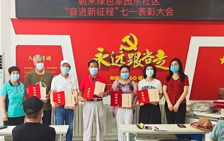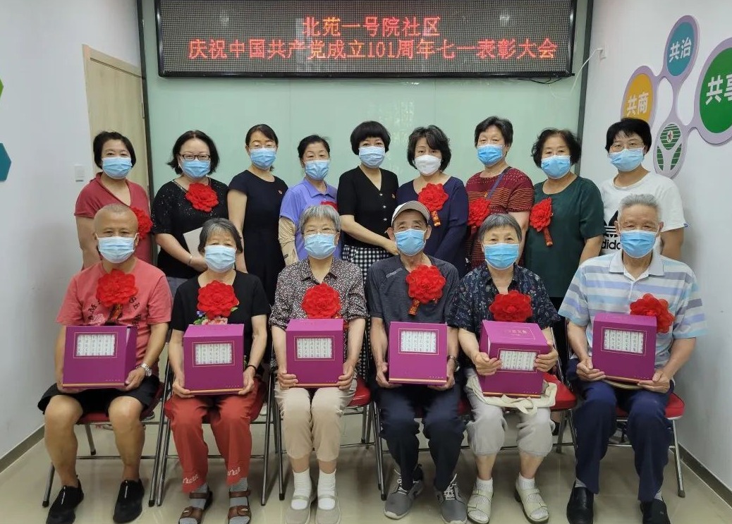 多个社区召开七一表彰大会,为“光荣在党50年”老党员颁发纪念章。同时,为社区发展做出特殊贡献的党员先锋、抗疫先锋、志愿先锋、优秀志愿者服务队、优秀共建单位代表颁发奖牌与证书,激励广大党员干部向榜样学习,凝聚奋进力量。