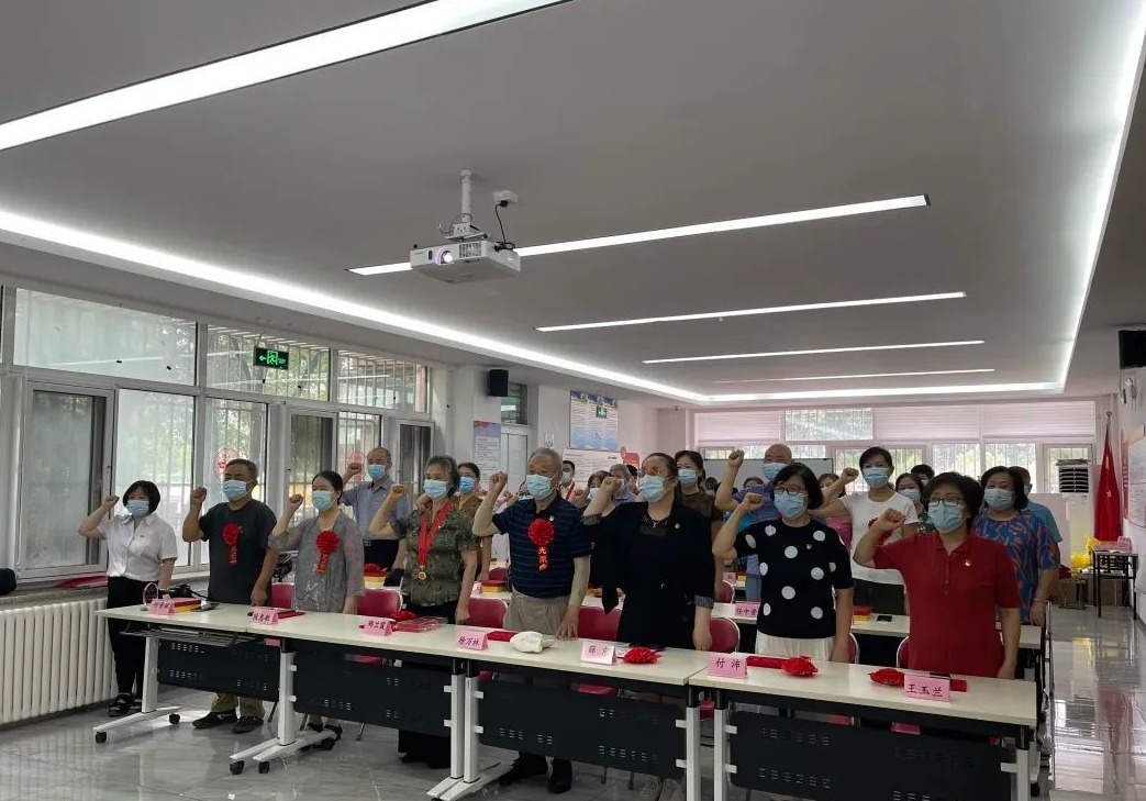 “我志愿加入中国共产党,拥护党的纲领,遵守党的章程,履行党员义务……”辖区部分社区组织全体党员重温入党誓词。面对鲜红的党旗,党员们举起右臂,庄严宣誓,铿锵恢宏的誓词,一字一句,神圣而豪迈。