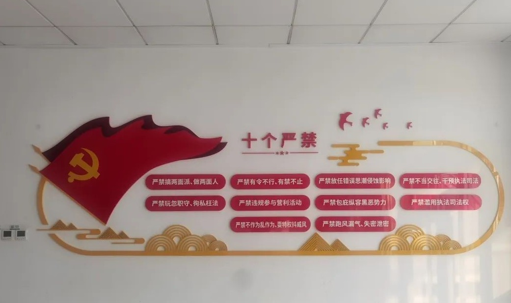 制作党建文化墙,使红色文化与检察文化同频共振,让红色教育“抬头见”,为检察工作高质量发展注入强大精神动力。