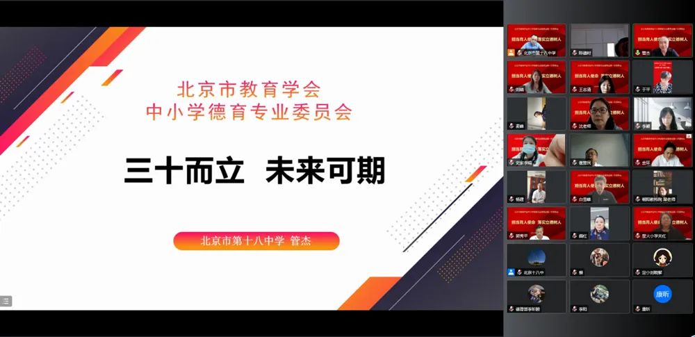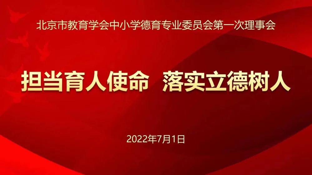 2022年7月1日,北京市教育学会中小学德育专业委员会新一届理事会在线上召开,并进行了新理事会的第一次科研活动。北京市教育学会会长罗洁向大会表达了祝贺,原北京市教育局副局长、北京市教育学会中小学德育研究会原会长兰宏生,北京市教育学会常务副会长兼秘书长唐亦勤,北京师范大学教育学部教授、北京师范大学公民与道德教育研究中心主任檀传宝,北京教育科学研究院德育研究中心主任谢春风,北京市丰台区委教工委书记房书勇,北京市丰台区教育科学研究院院长赵学良、副院长简作军等领导和专家,以及全市近50所中小学校代表、教科研单位的德育工作者组成的新一届理事会全体成员出席了会议。