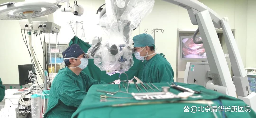 手术由王贵怀主刀,主治医师荆林凯辅助,荆林凯首先使用C形臂定位,充分暴露胸椎第12节至腰椎第1节段后,使用超声骨刀精准铣下该节段椎板,切开并悬吊硬脊膜。在生理监护下,王贵怀在显微镜下谨慎辨别并分离肿瘤与脊髓、神经根的边界,在避免对周围神经组织造成损伤的情况下,慢慢剥离直至完全切除肿瘤。