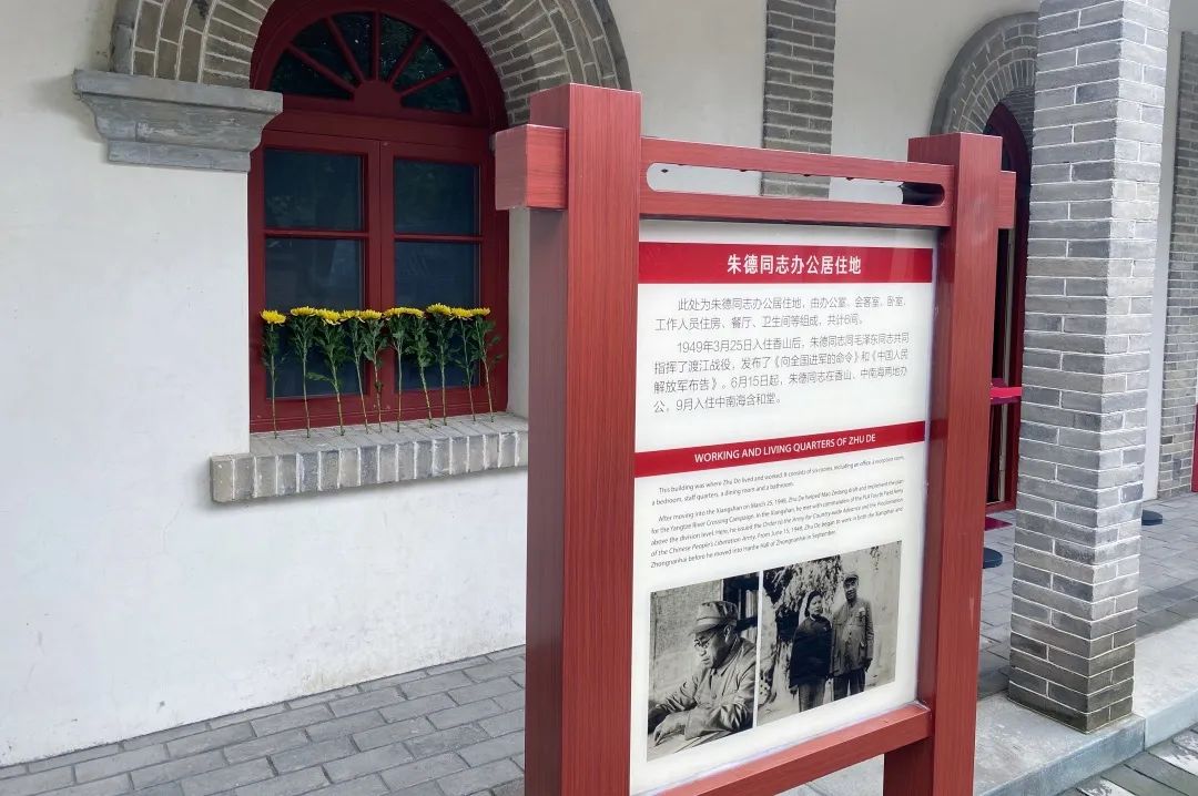 1949年3月25日入住香山后,朱德同志同毛泽东同志共同指挥了渡江战役,发布了《向全国进军的命令》和《中国人民解放军布告》。6月15日起,朱德同志在香山、中南海两地办公,9月入住中南海含和堂。