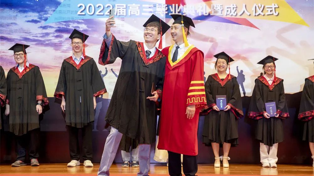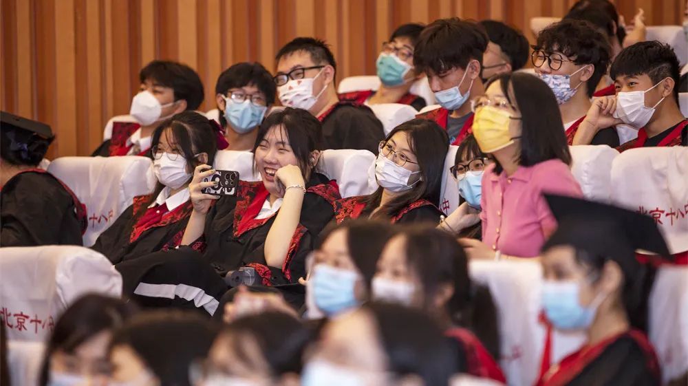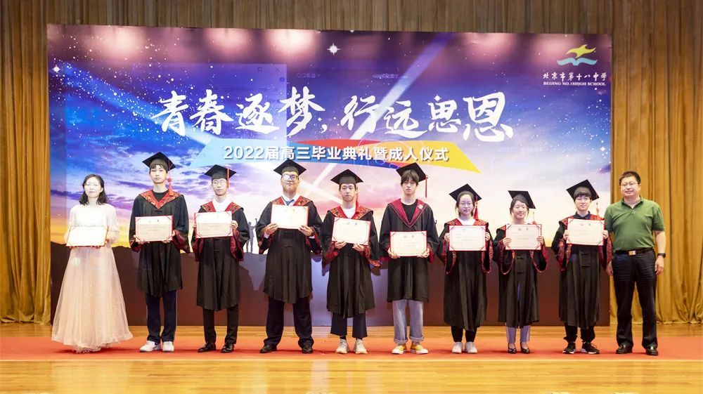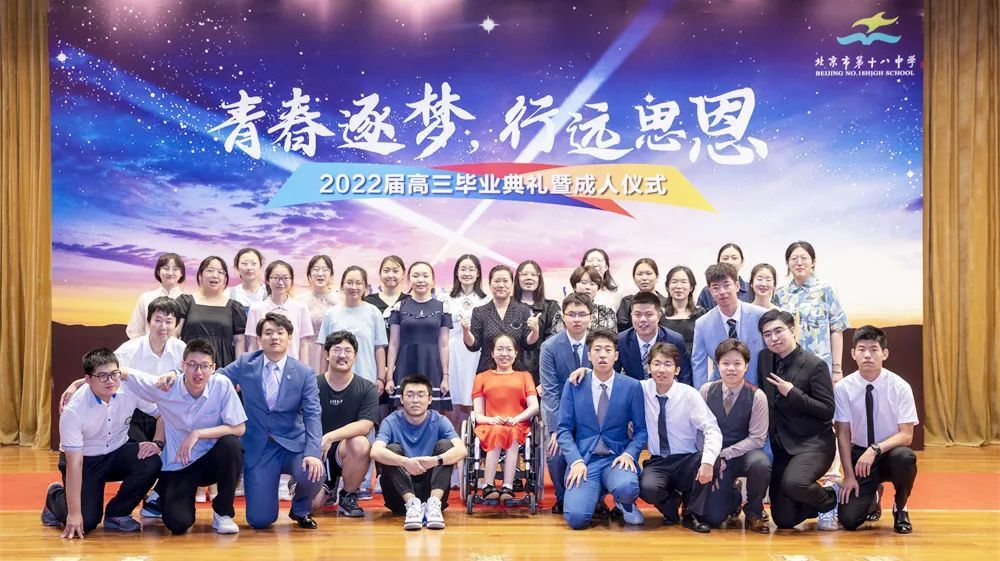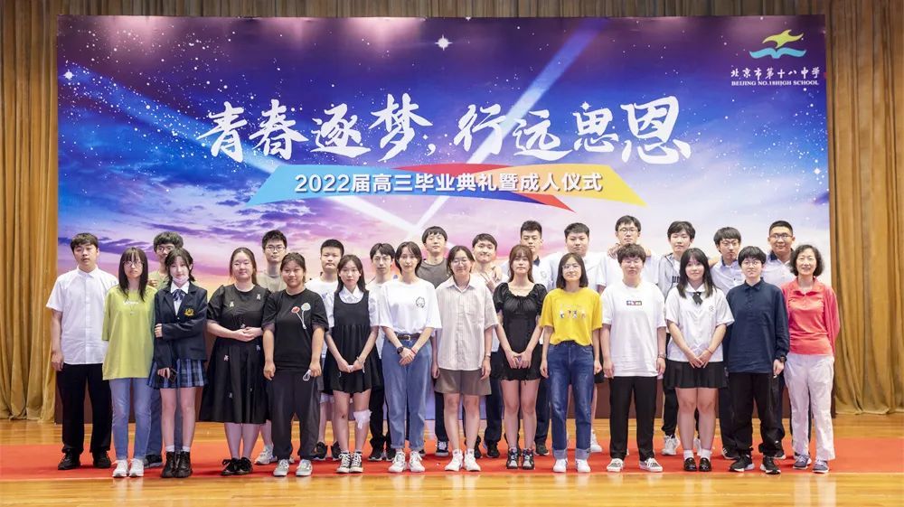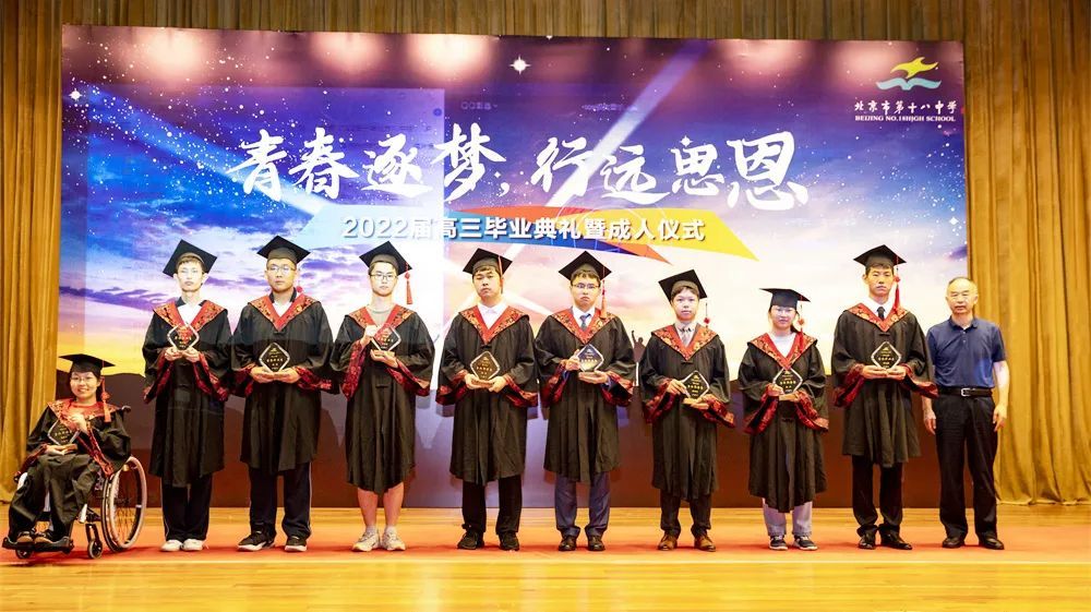 “现在我宣布,‘青春逐梦 行远思恩’——北京市第十八中学2022届毕业典礼暨成人仪式,现在开始!”典礼在主持人何宗怡、隗立恒同学的宣布声中,拉开帷幕。