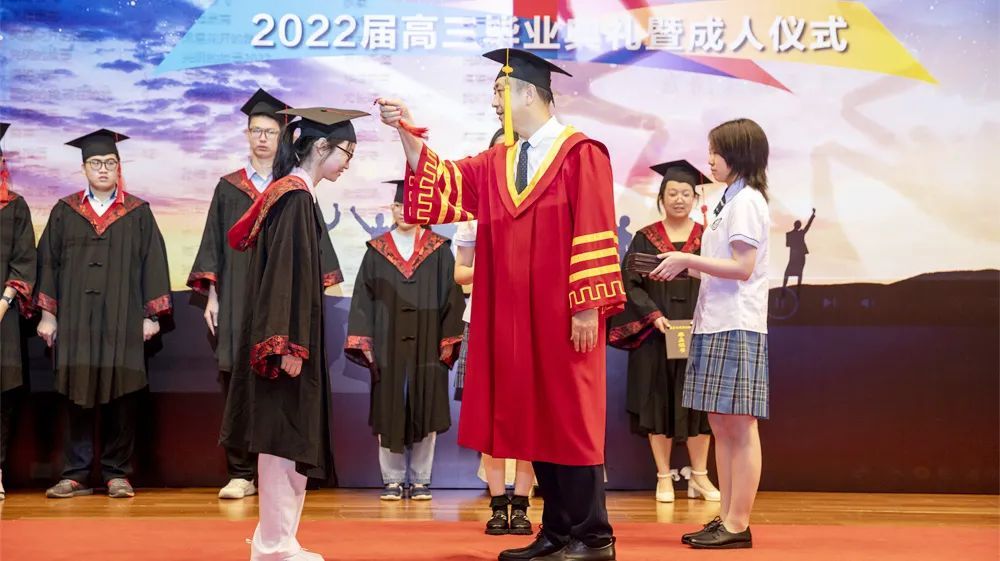 回首昨日,满怀憧憬,展望未来,我们也要各自踏入大学生活。今天,各位同学已是自信满怀,接受学校的认可,踏上崭新的征程。管杰校长给各班同学颁发毕业证并进行“拨穗礼”。稻穗或麦穗象征成熟,这一有意义的“拔穗”,代表稻穗或麦穗成熟,象征高三毕业生已学有所成,展翅高飞。此时,现场的气氛达到高潮。