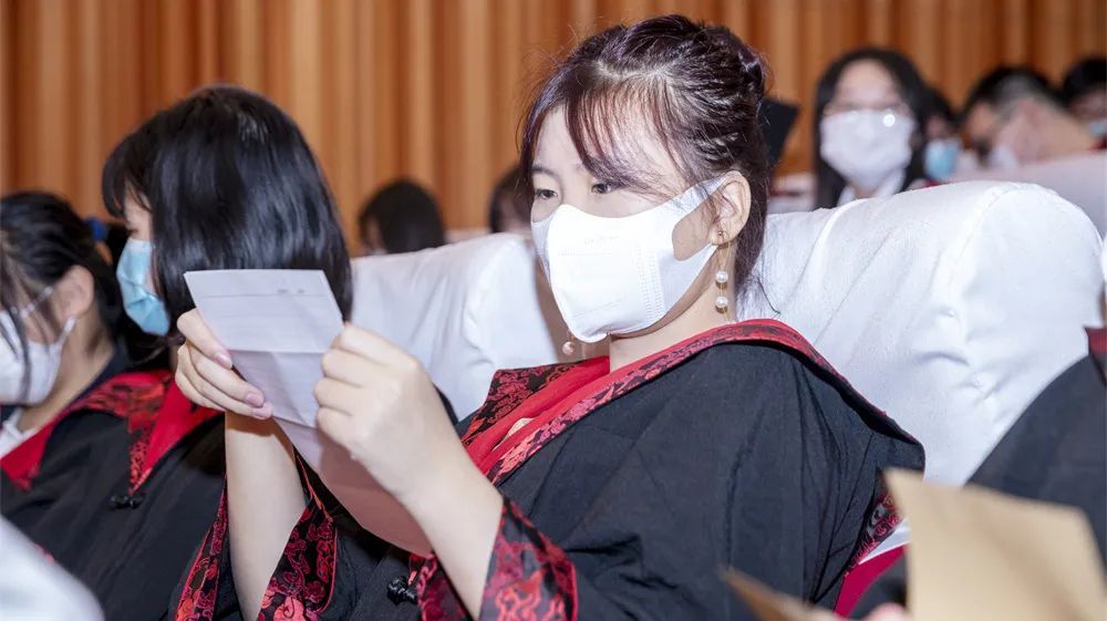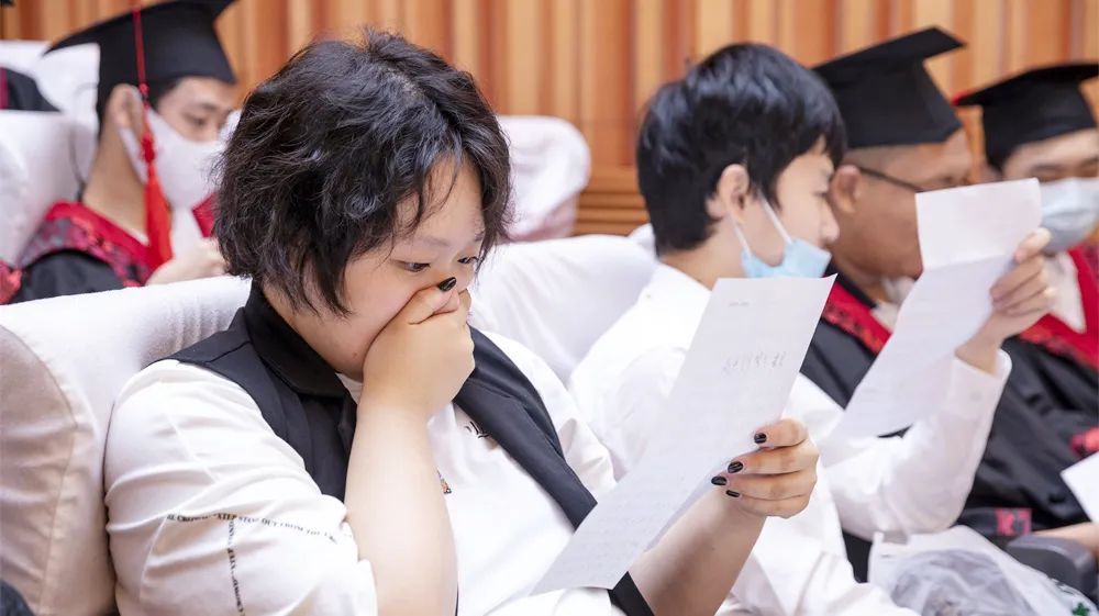 回首过往,父母和长辈们坚定地支持与悉心地照顾,在我们的成长轨迹上留下的,满是他们的身影。无法来到现场的父母,把一份份殷切的期望、一个个深情的嘱托写在了家书当中。这是一次亲切的交谈,也是一次心声的吐露,同学们拆开信封,静静地阅读着家书,聆听着父母的无边牵挂。他们的鼓励、嘱托、希望,在这个美好的毕业时刻,在这个十八岁的成人时刻,显得弥足珍贵。
