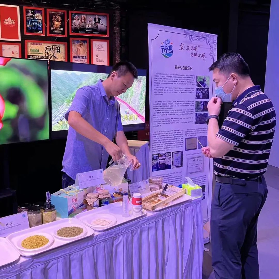 7月6日,“北京节节高”公益服务共同体启动仪式在郎园Vintage举行。北京广播电视台主持人李杨薇介绍密云冯家峪割蜜节,并称其为“北京最甜蜜的节日”,主持人邬晔纬现场推介密云石峨御皇李子,并邀请嘉宾品尝。在活动现场的体验展区,密云区园林绿化局、东邵渠镇石峨村应邀参展,由北京神农之乡养蜂专业合作社、北京天葡庄园农业科技发展有限公司、邑仕庄园国际酒庄等密云企业带来的蜂蜜、葡萄、葡萄酒等特色农产品悉数亮相。密云区融媒体中心作为媒体传播联盟成员见证公益服务共同体正式启动。