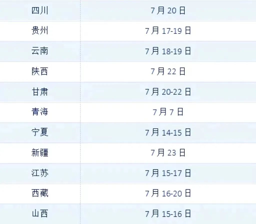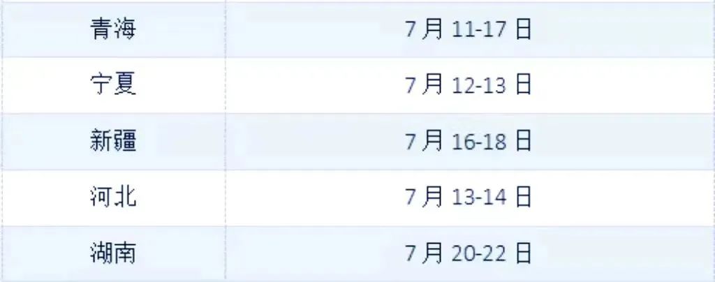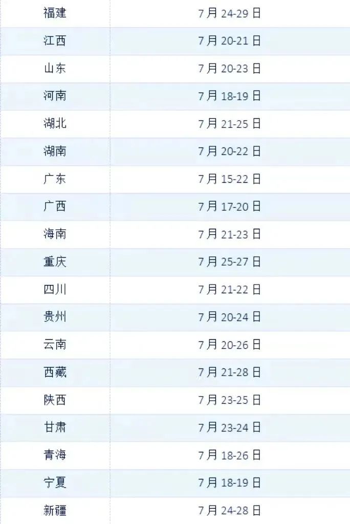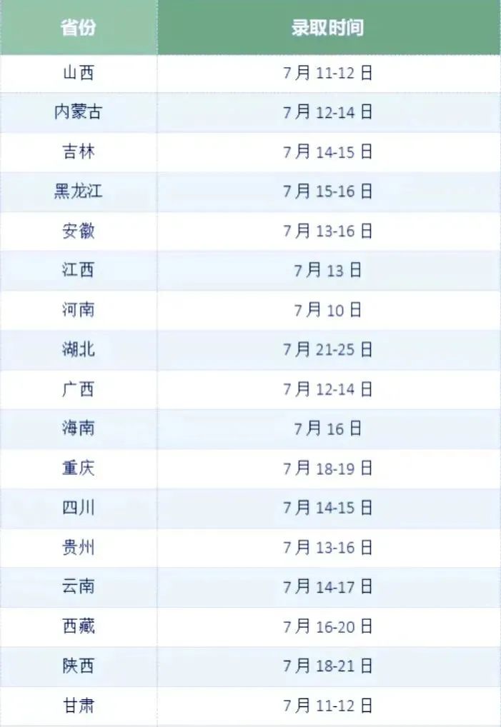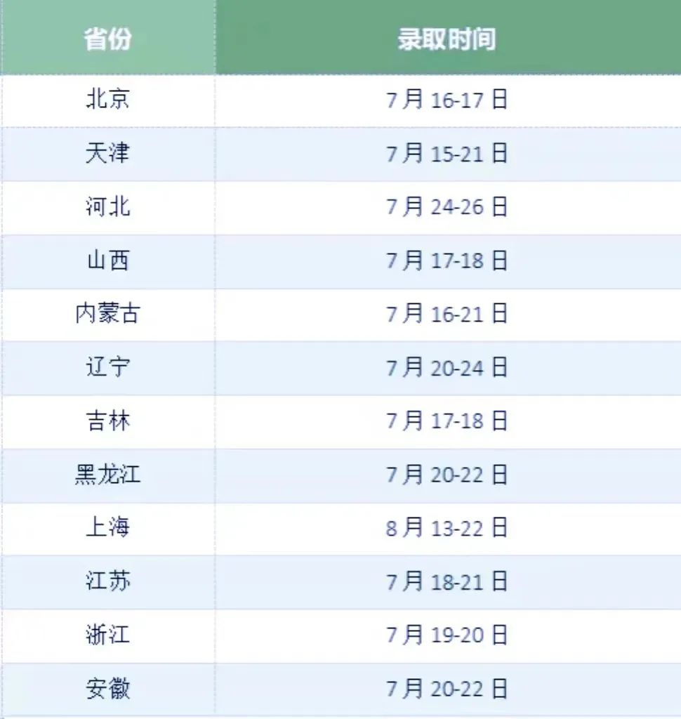 各省份录取时间安排