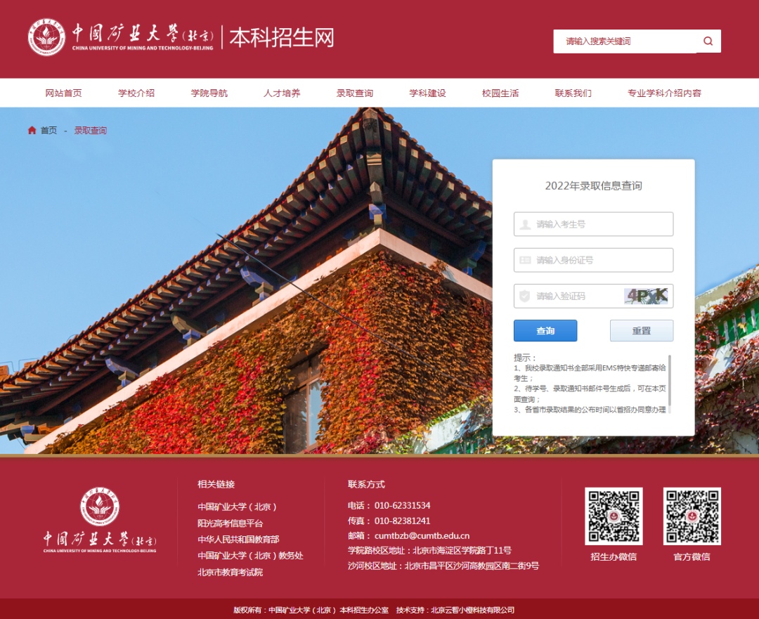 2022年中国矿业大学(北京)本科招生录取工作已经开始!为了使广大考生和家长及时了解到最新录取动态,特将各省本科批次录取时间安排、录取结果查询方式和中国矿业大学(北京)已完成的录取批次展示如下。