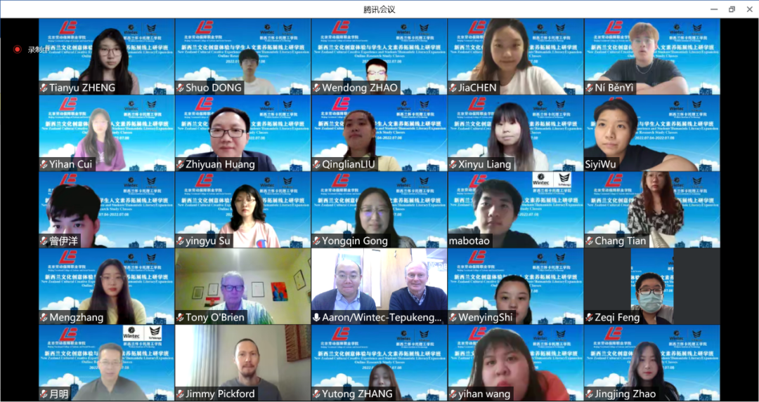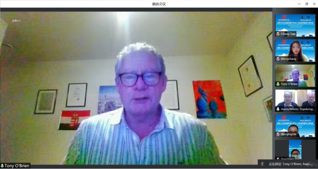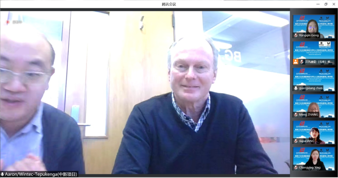 怀卡托理工学院中新项目总监Tony O'Brien在致辞中表示,这次线上研学是加强两校沟通的一座文化之桥。尽管新西兰和中国远隔重洋,但毛利文化和中国文化在价值观上仍有许多相通之处,新西兰有一句毛利谚语:“若问世界上最重要的东西是什么,答案将是人民,人民,人民。”以人为本,增进理解,期待两校开展更加深入的对话。