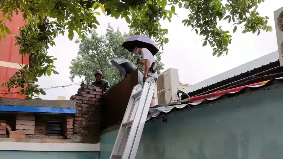 ⬆️为湾子街小区一居民家的房顶铺设防雨膜