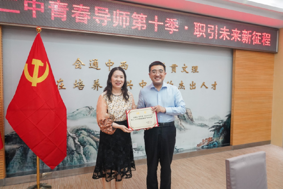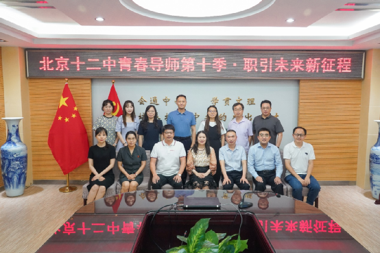 北京十二中校长蒋炎富为青春导师们颁发了聘书,并指出本活动有利于帮助学生探索职业世界、实现自我定位和增强决策技能,促进学生树立正确的职业观、人生观、价值观,对学生生涯规划和人生理想教育有重要引导作用,是北京十二中家校社共育的有力实践