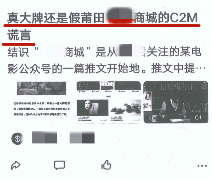 针对某商城“大牌平替”的宣传,某文化公司通过其自媒体账号发文予以质疑。其通过搜索相关网络评论,并结合自身消费体验撰写了涉案文章,并在其运营的微信公众号以及其他多个互联网平台进行发布。文章认为该某商城所谓“大牌品质,平民价格”的宣传名不副实,具有售假和欺瞒消费者的嫌疑,同时某商城内部也存在着“霸王条款”和“刷单”现象。