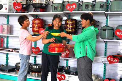 阿力得尔苏木杨家嘎查村民拿积分兑换物品。