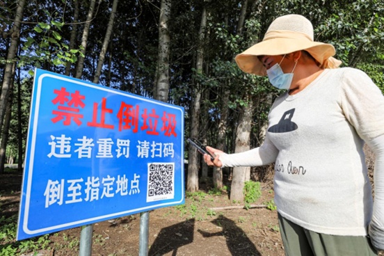 俄体镇双胜村村民用手机扫码了解垃圾填埋场位置。