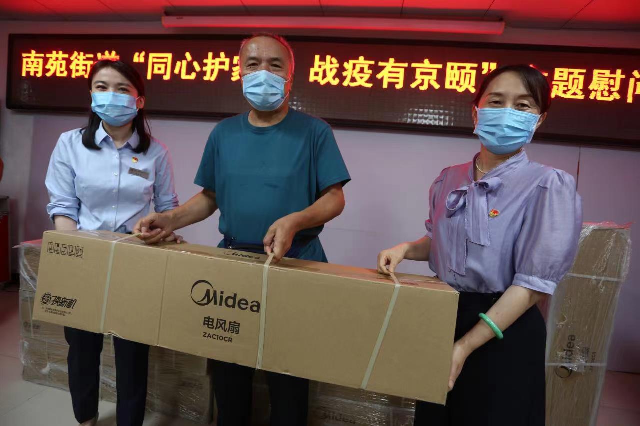 7月27日,南苑街道便民服务中心慰问辖区203名参与社区防控的社会化管理退休人员。工作人员按照服务时长为社会化管理退休人员送去了慰问品,感谢他们牺牲休息时间,展现“退而不休”积极参与疫情防控,为南苑的战疫工作,并肩同心守护家园做出积极贡献。同时也希望社会化管理退休人员继续支持街道和社区各项工作,为基层治理献计献策,踊跃参加各种活动,切实为南苑各项工作上台阶贡献力量!