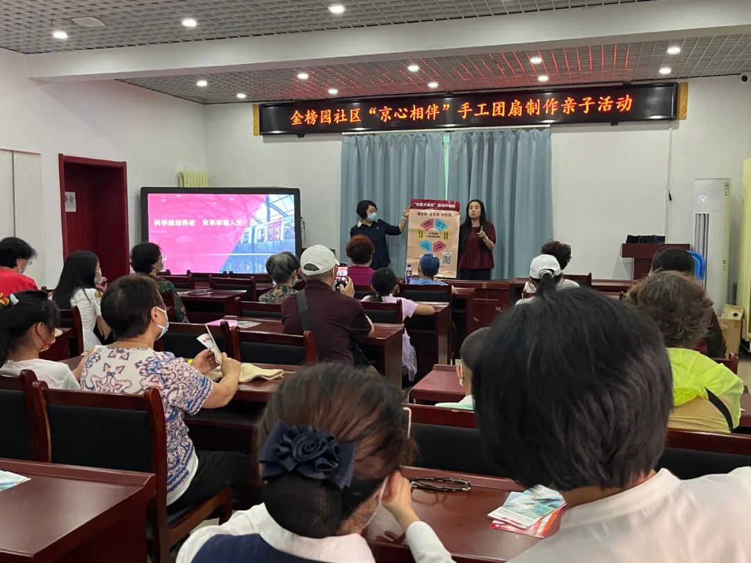 近日,金榜园社区在多功能厅开展了“京心相伴”手工团扇制作亲子活动,让学生和家长们了解并喜爱手绘团扇这一优秀的传统文化艺术。