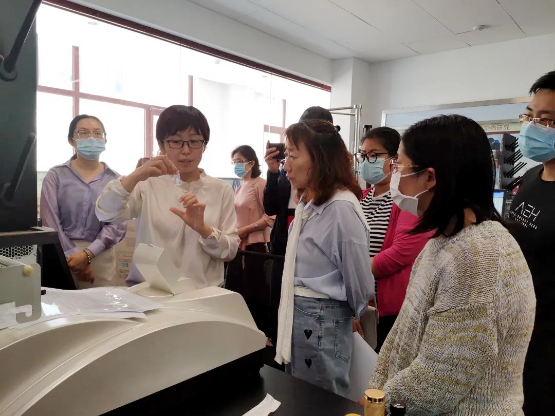 ▲杜春燕老师(左二)在给学生介绍原子力显微镜(供图/杜春燕)