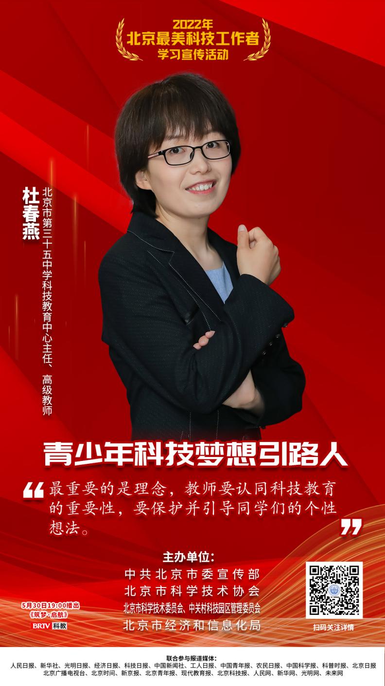 作为北京市第三十五中学科技教育中心主任,杜春燕手把手指导学生开展科学探究,为中学生搭建科学实践的平台,打造了中学科技教育的创新模式。