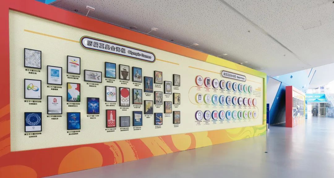 历届夏奥会海报及会徽徽章墙。