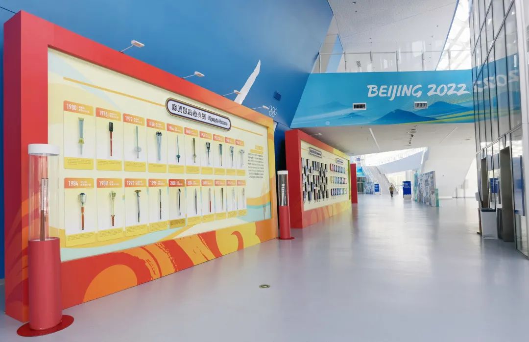 历届夏奥会火炬模型墙。